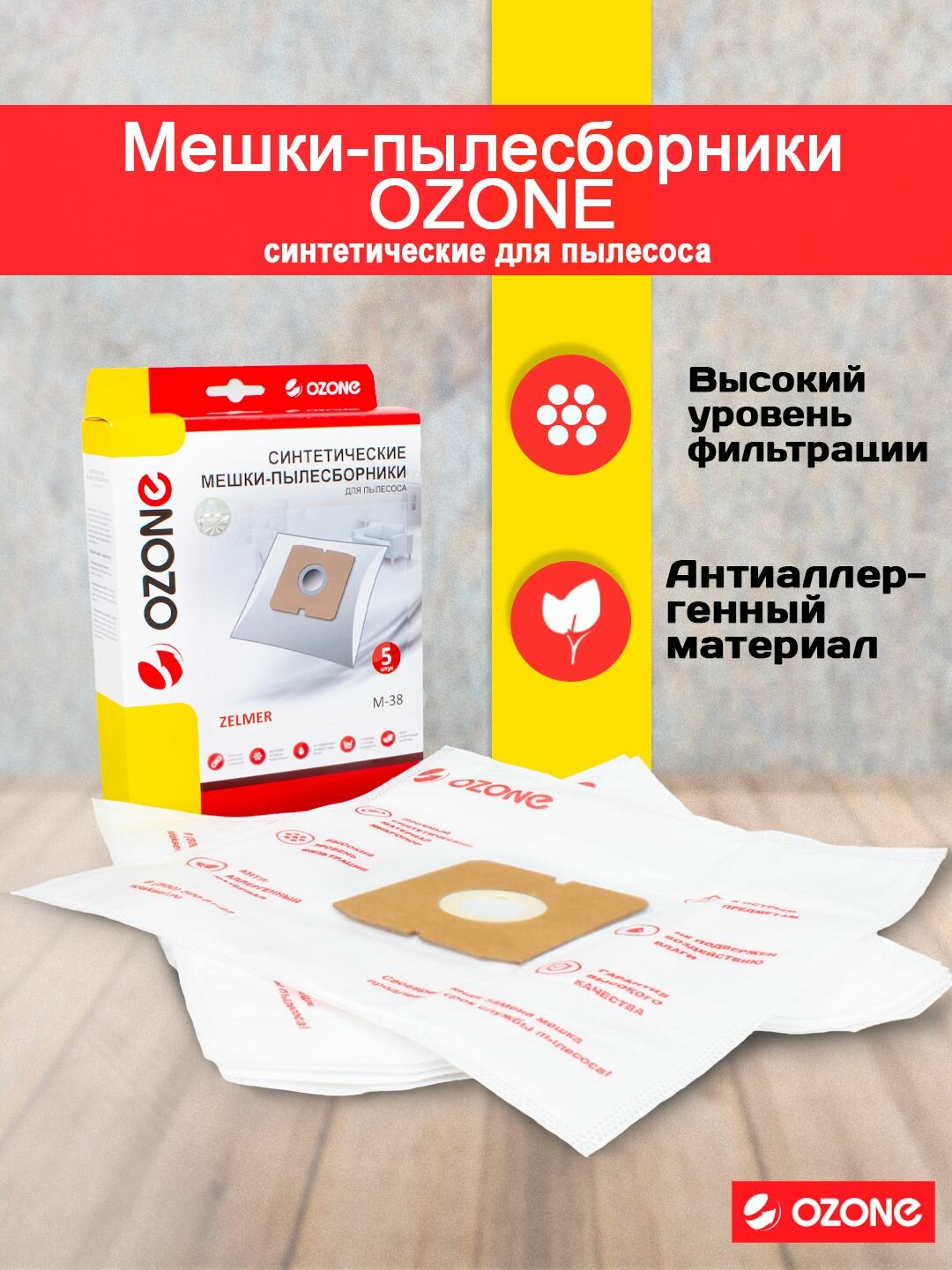 Пылесборник синтетический micron M-03, 5 шт