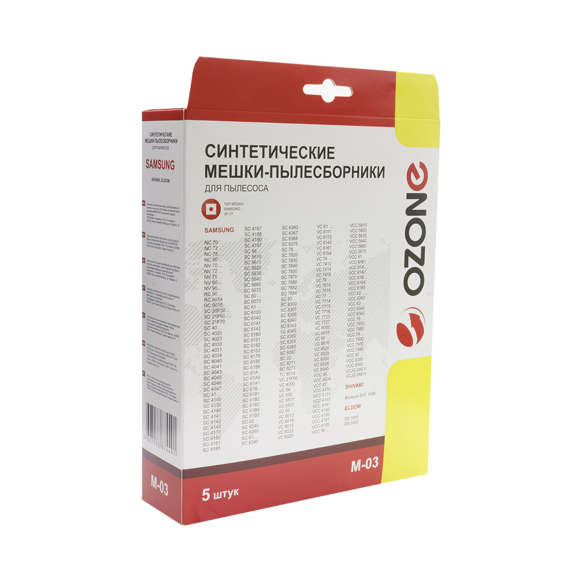 Пылесборник синтетический Ozone micron M-03, 5 шт (Samsung VP-77 ) OZONE 1533196 .