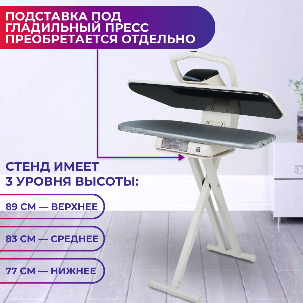 | Дополнительная информация | Подставка под гладильный пресс идет в комплекте |