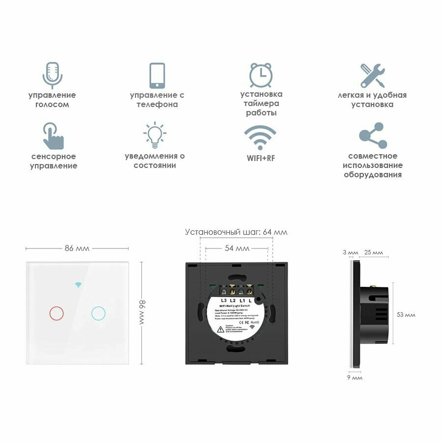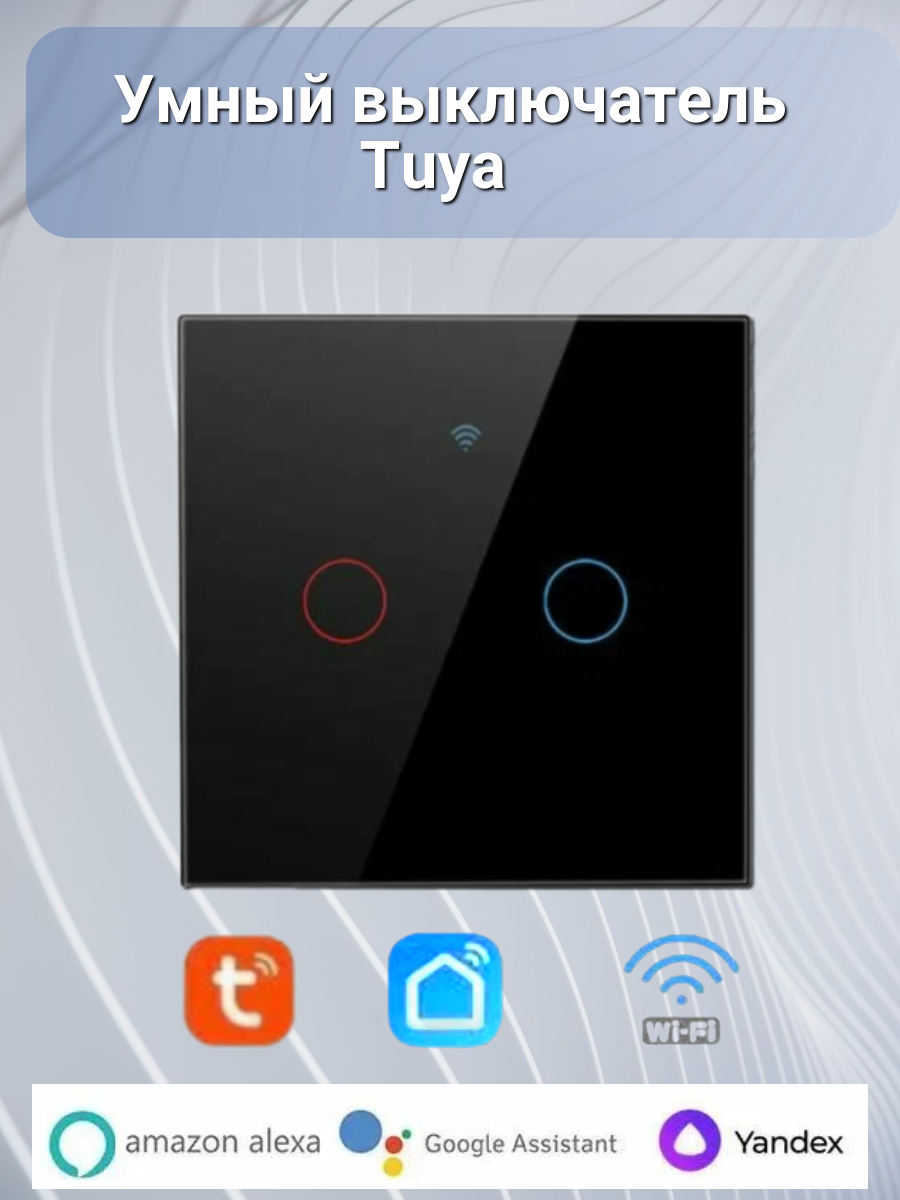 Умный выключатель WiFi Tuya двухклавишный сенсорный с голосовым управлением интересное: