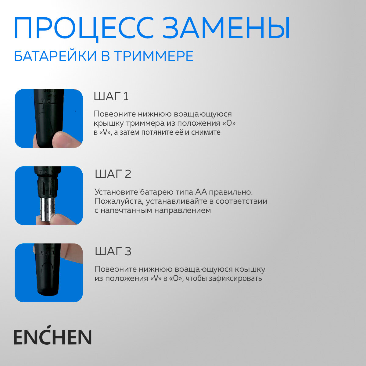 Триммер для носа и ушей Enchen Mocha N с влагозащитой, со встроенным аккумулятором, черный, компактный, легкий