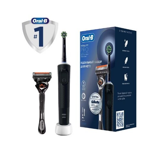 Купить Электрическая зубная щетка Braun Oral-B Vitality Pro D103.413.3 Black (с бритвой Gillette Fusion 5 ProGlide)