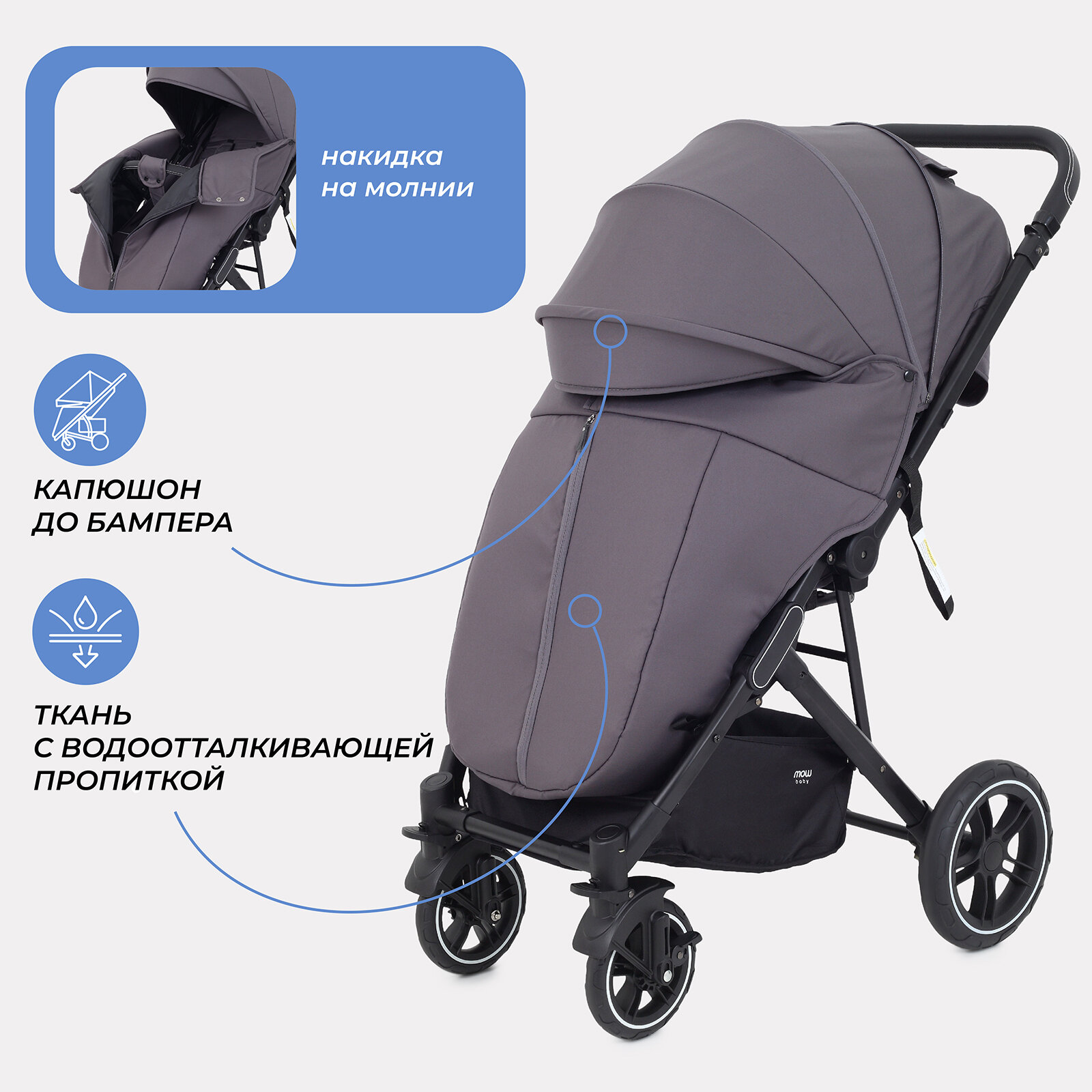 Коляска прогулочная всесезонная MOWBaby "TURBO 2.0" MB021 Carbon интересное: