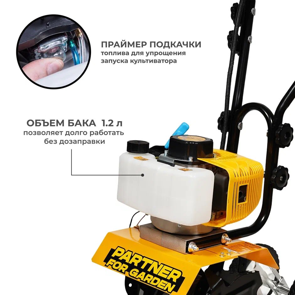 Культиватор бензиновый Partner for Garden MT-520 ( 2,3 Л, с ширина обработки 300мм, Глубина обработки 220 мм ) интересное: