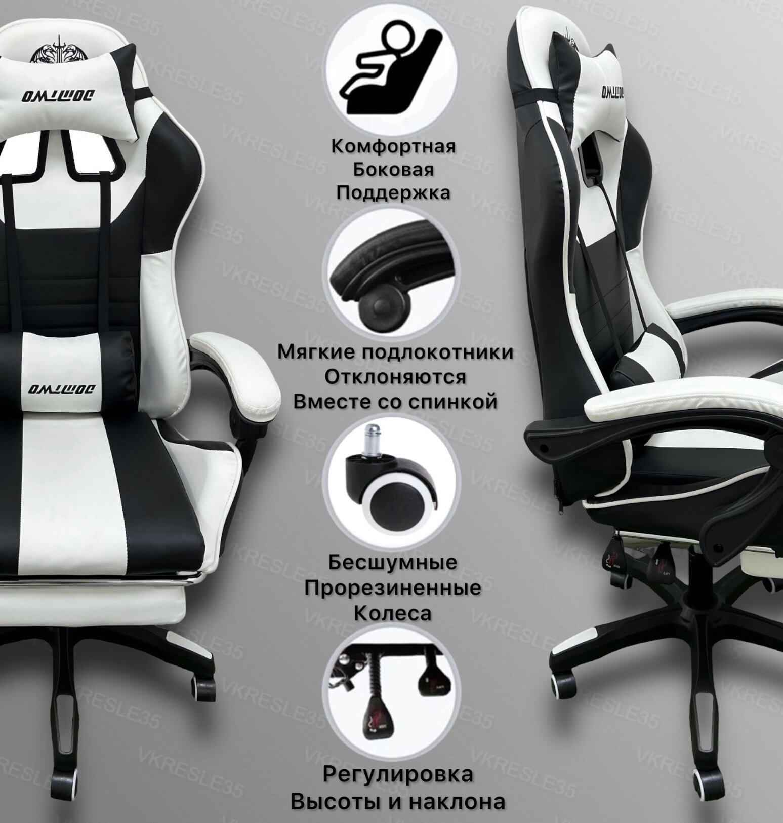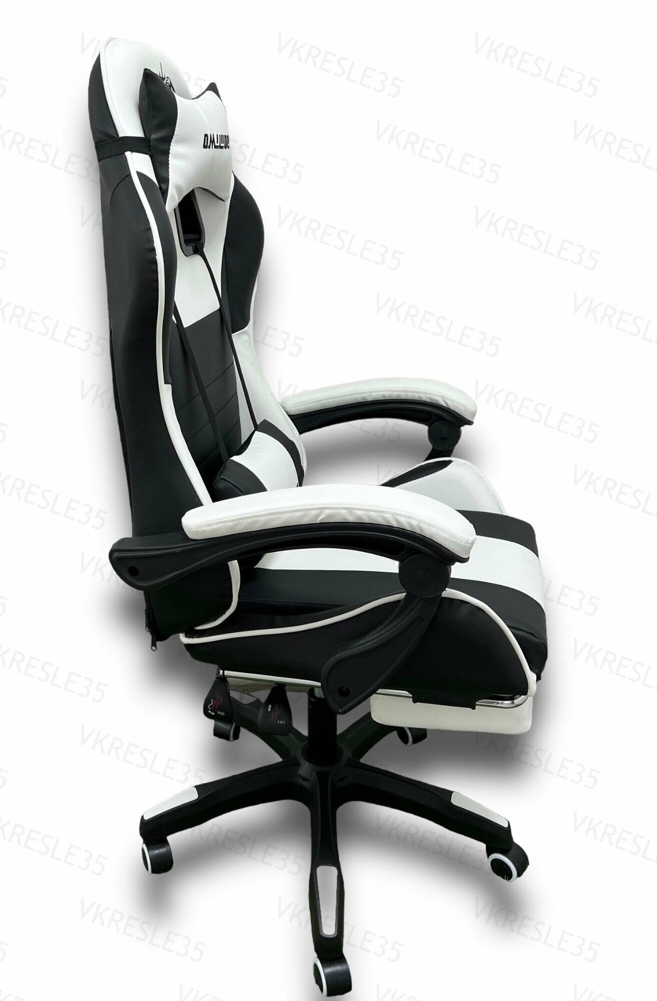 Игровое Компьютерное Кресло, с Вибромассажем, цвет Белый-Черный с подставкой для ног