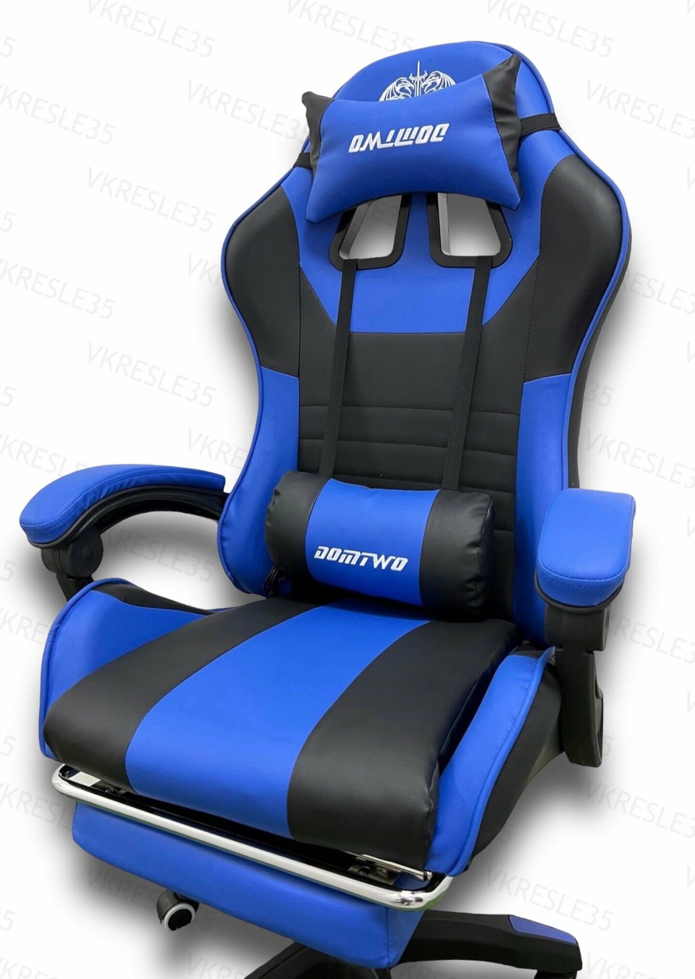 Игровое Компьютерное Кресло, с Вибромассажем, цвет Синий-Черный с подставкой для ног