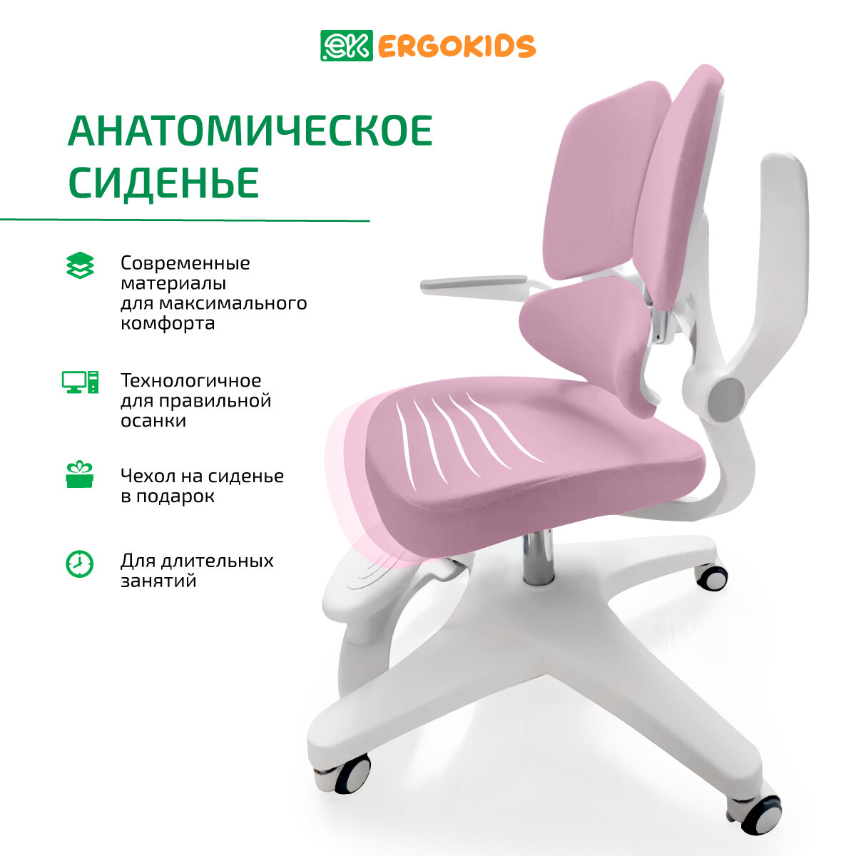 Растущее детское кресло для школьника ErgoKids Trinity Pink (арт. Y-617 KP) для обычных и растущих парт с подлокотниками, подставкой для ног и чехлом