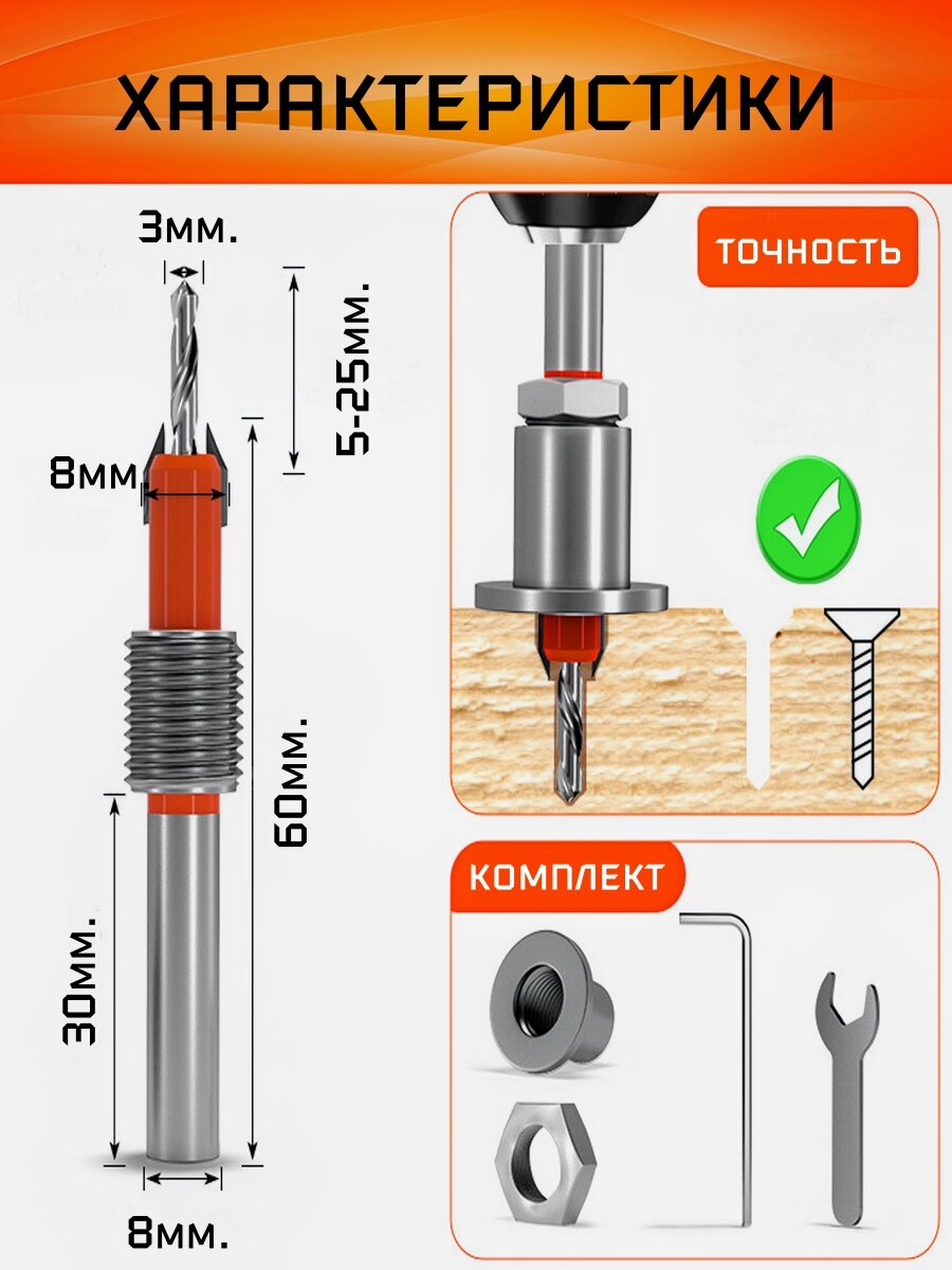 СохранитьСверло с зенковкой переходное с 3мм на 8 мм с ограничителем оранжевое интересное: