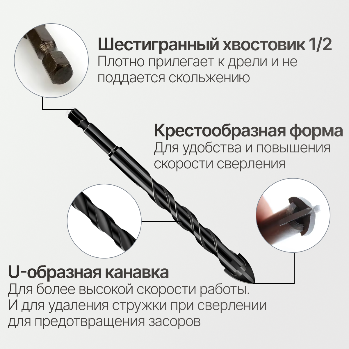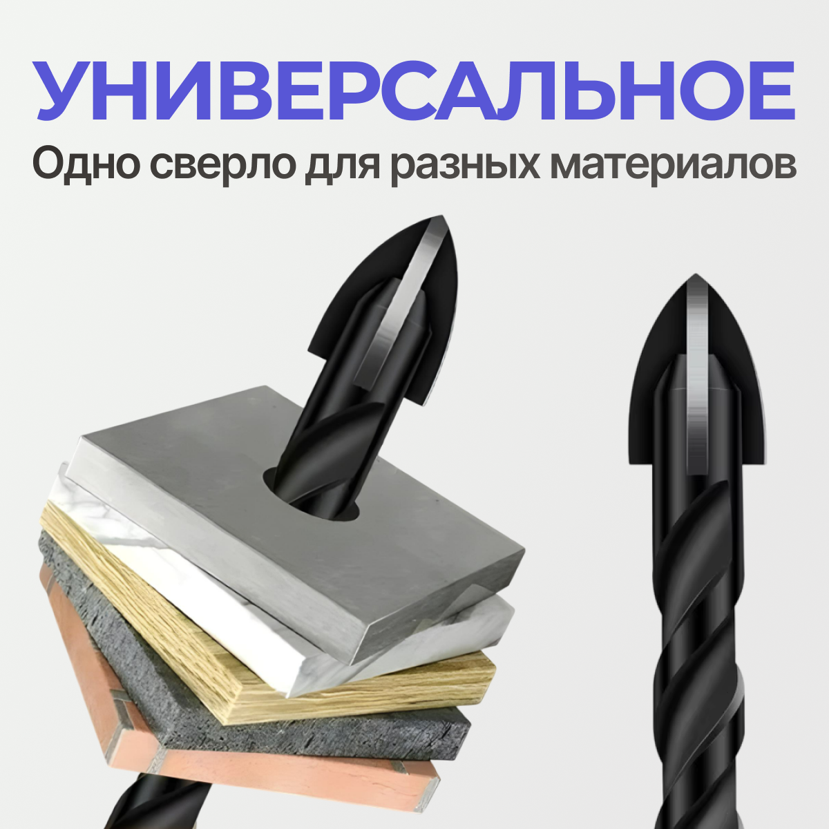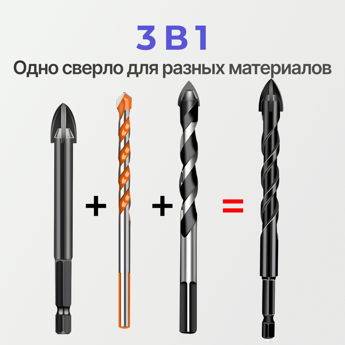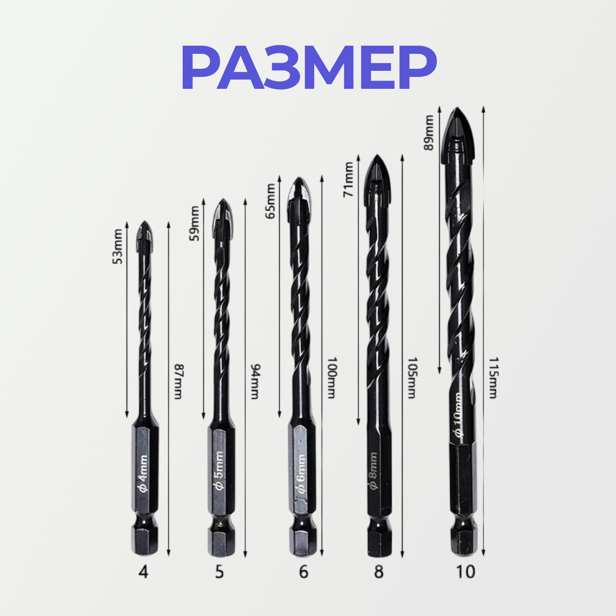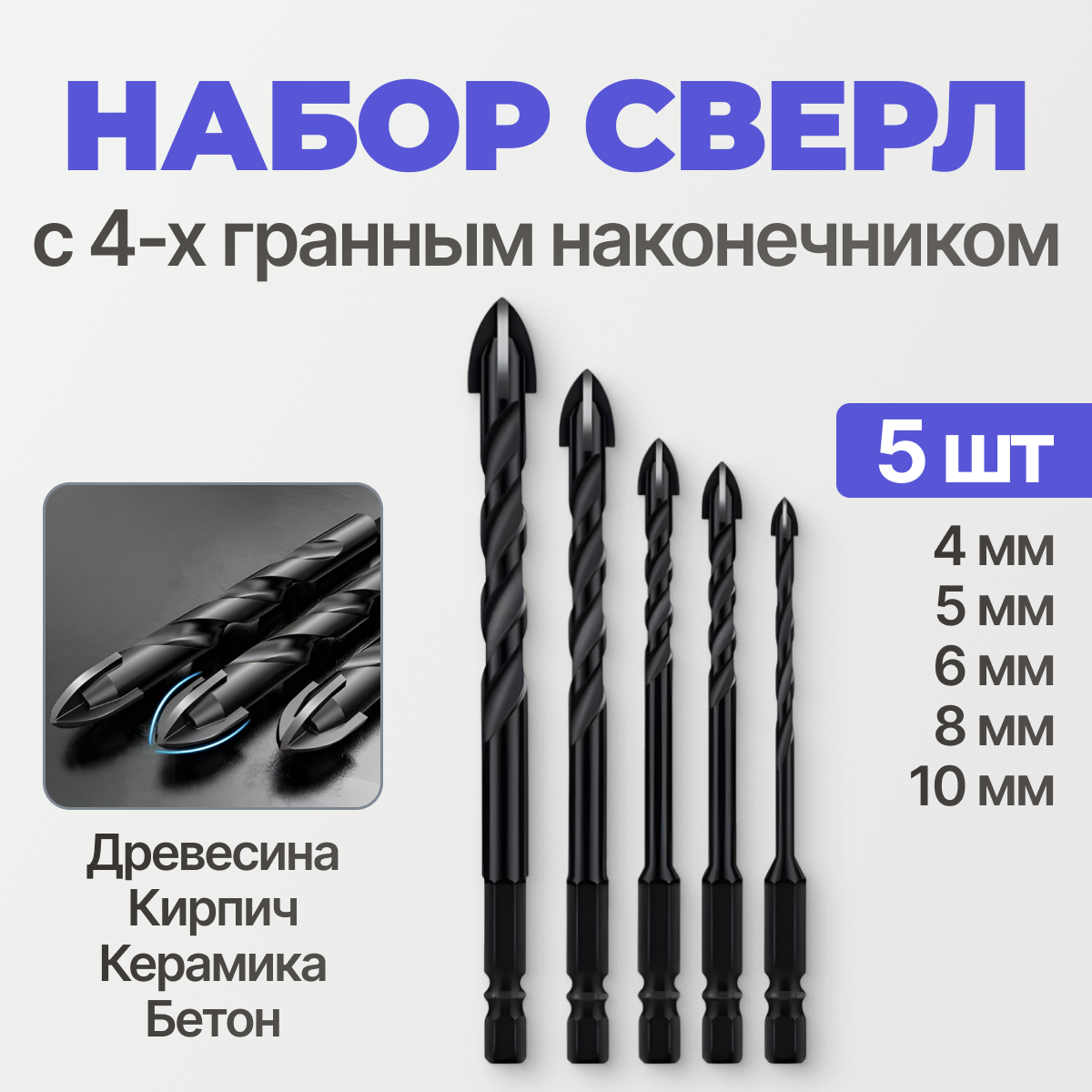 Сверло по плитке, по бетону, по стеклу,4мм/5мм/6мм/8мм/10мм/ крестовой наконечник чёрные 5в1 интересное: