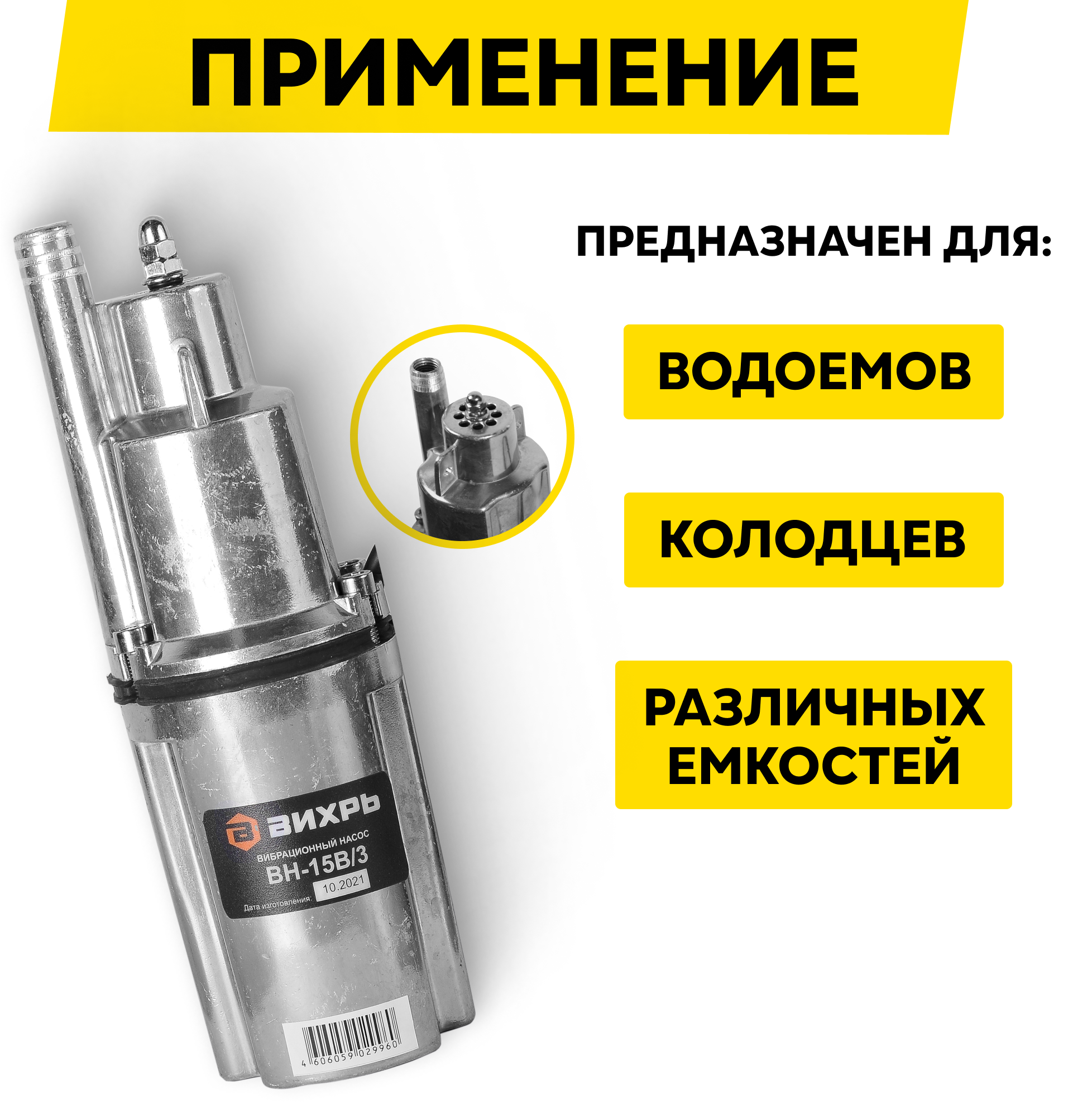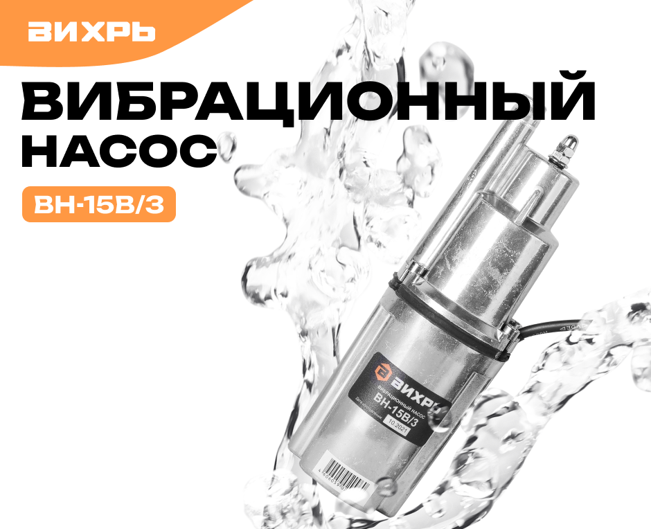 Вибрационный насос ВН-15В/3 Вихрь, высота подъема 72м, верхний забор воды, кабель 15м интересное:
