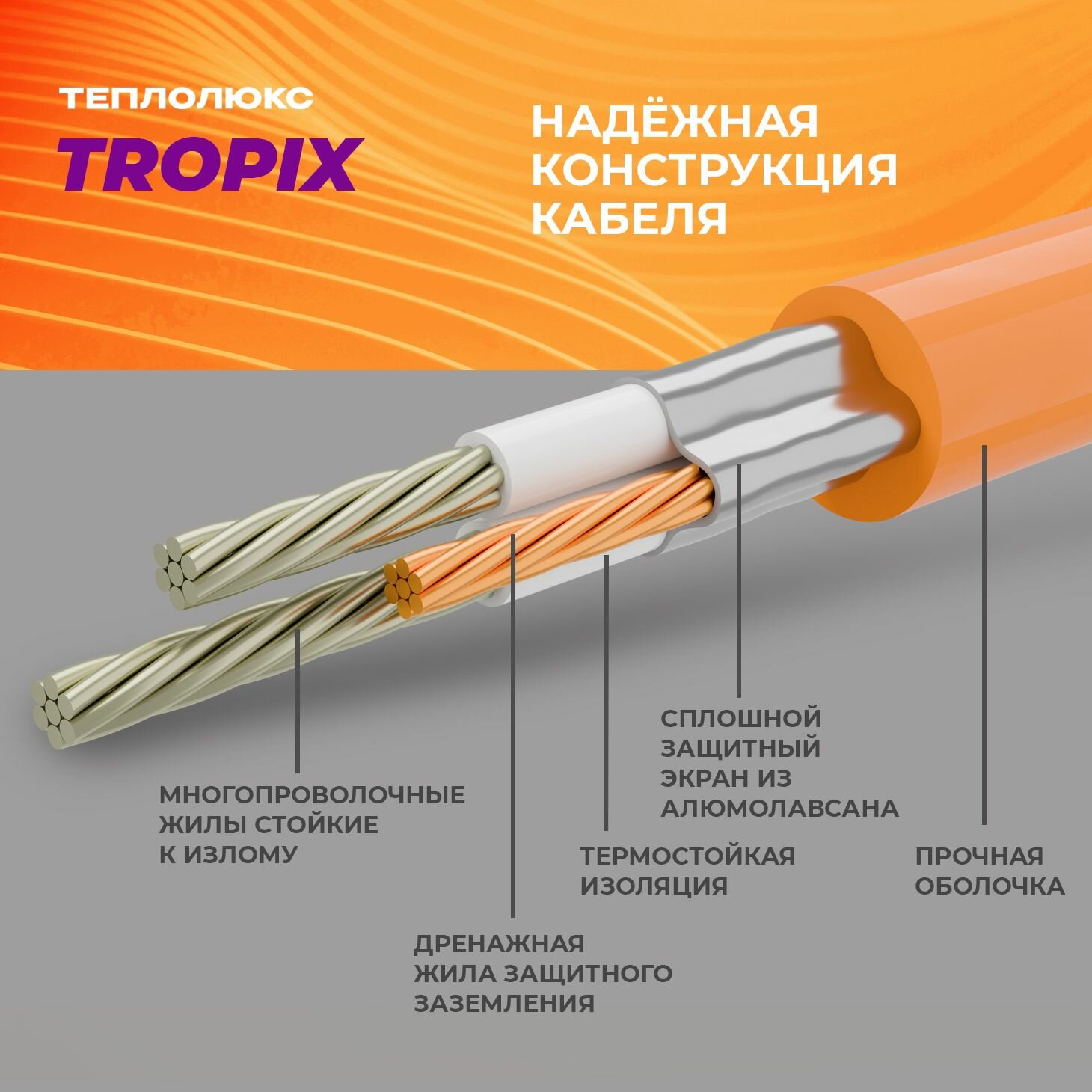 Теплый пол. Кабель нагревательный "Теплолюкс" Tropix ТЛБЭ 50,0 м/900 Вт