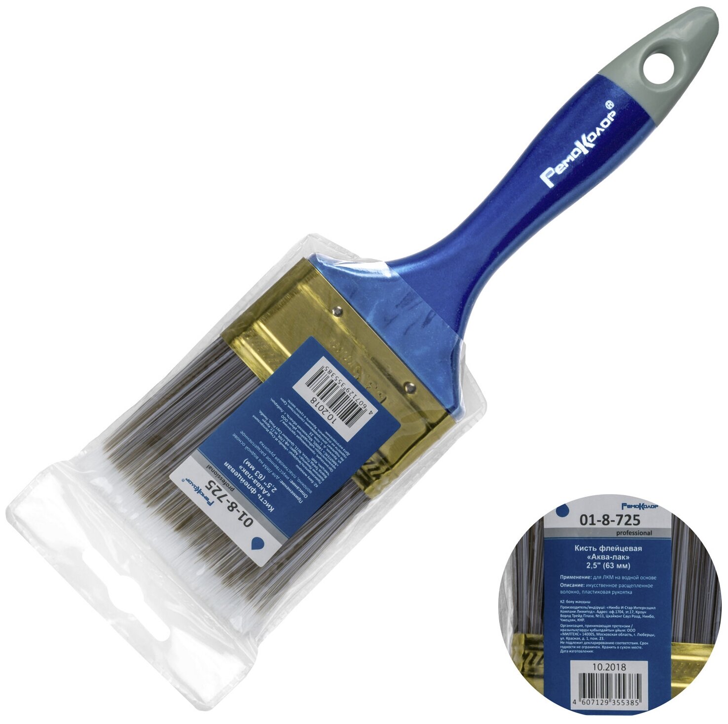 Кисть флейцевая RemoColor Аква-лак 2.5, ширина 63 мм.