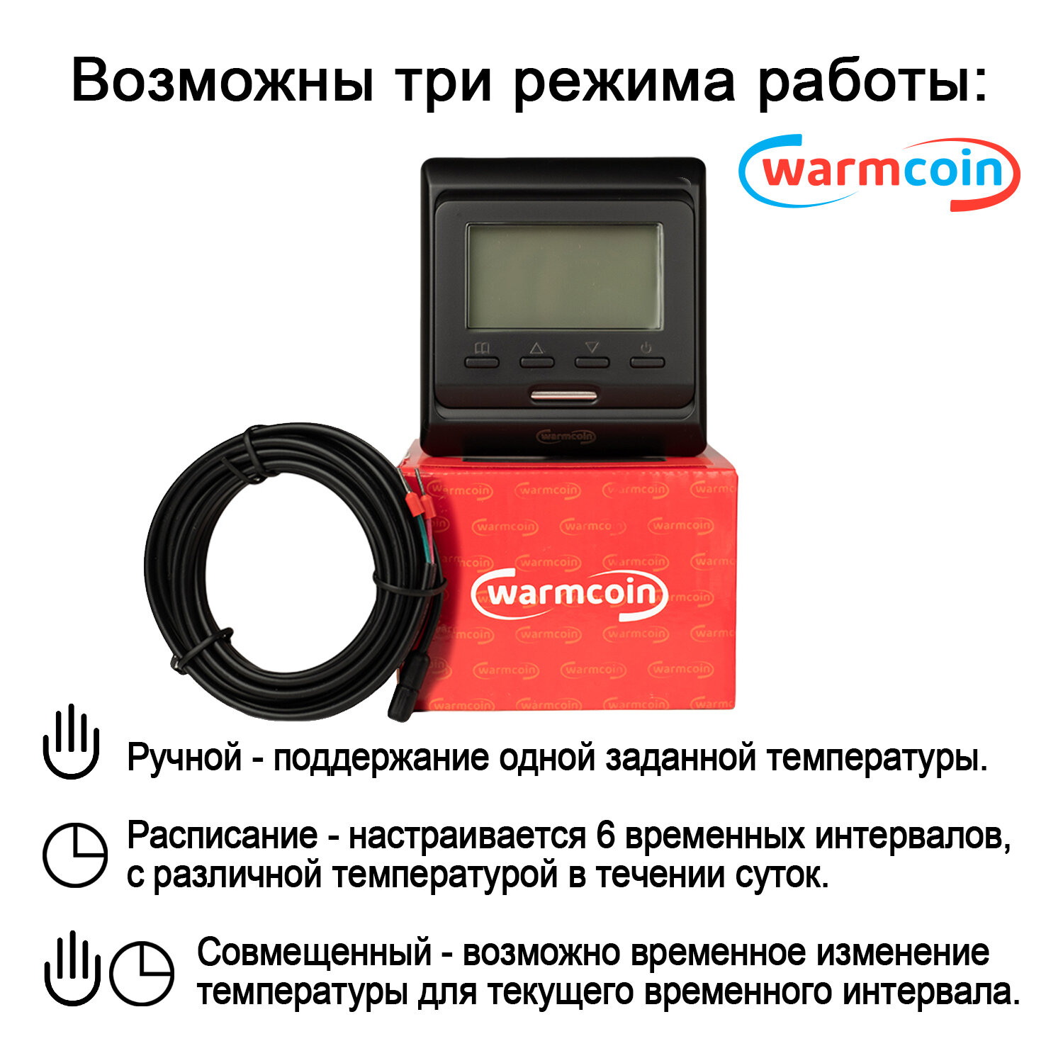 Теплый пол Warmcoin инфракрасный 80 см, 220 Вт/м. кв. с черным электронным терморегулятором, 7 м. п