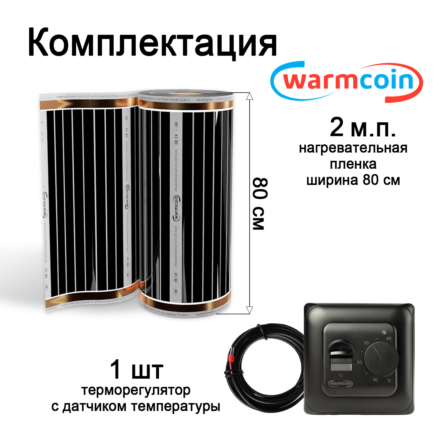 Теплый пол Warmcoin инфракрасный 80 см, 220 Вт/м.кв. с электронным терморегулятором, 2 м.п
