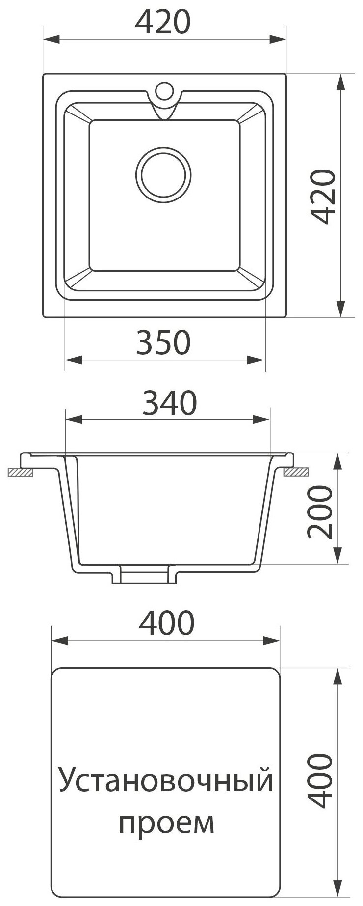 Мойка для кухни GreenStone GRS-42-309, врезная, 415 x 415 мм, темно-серая