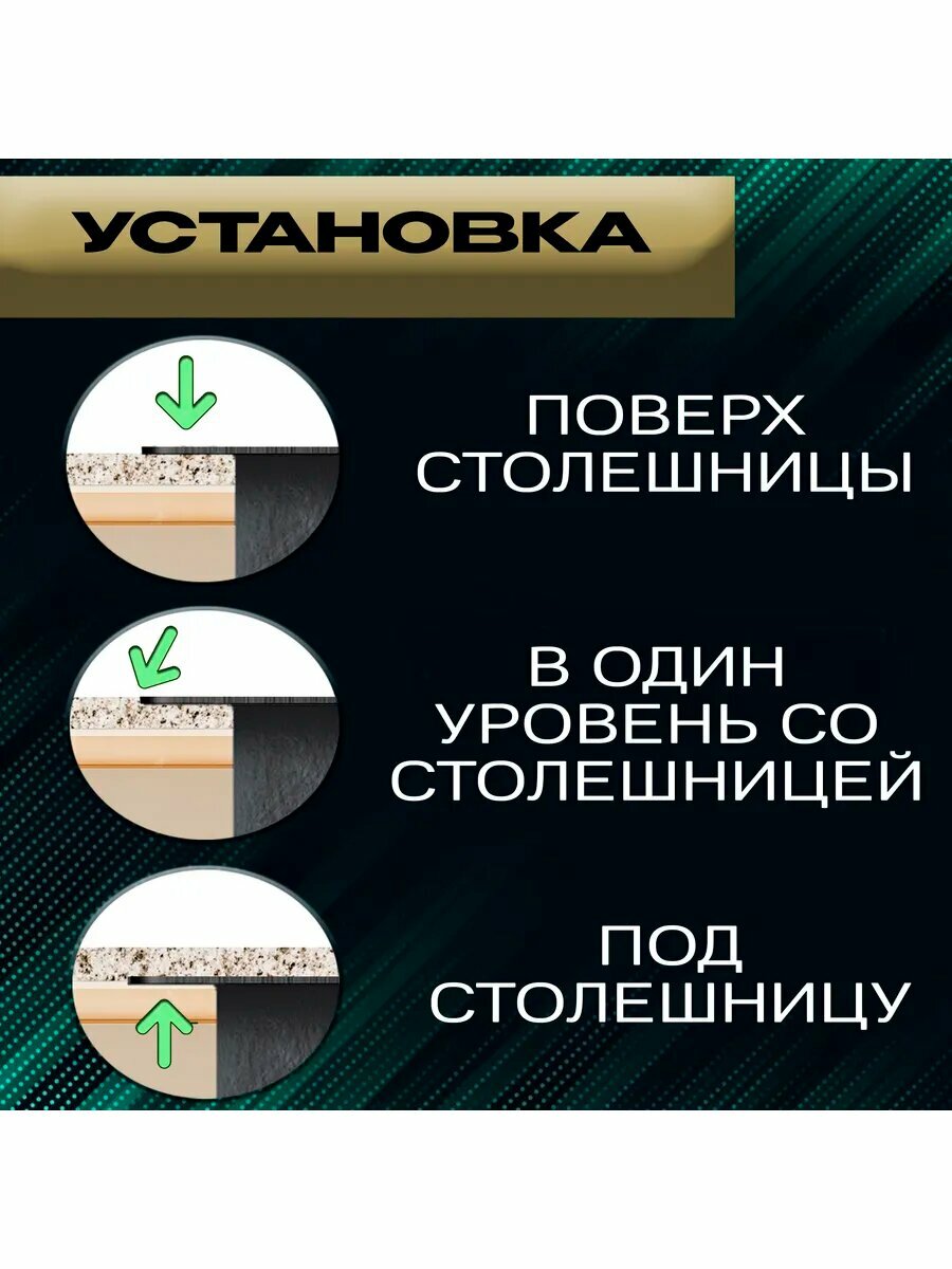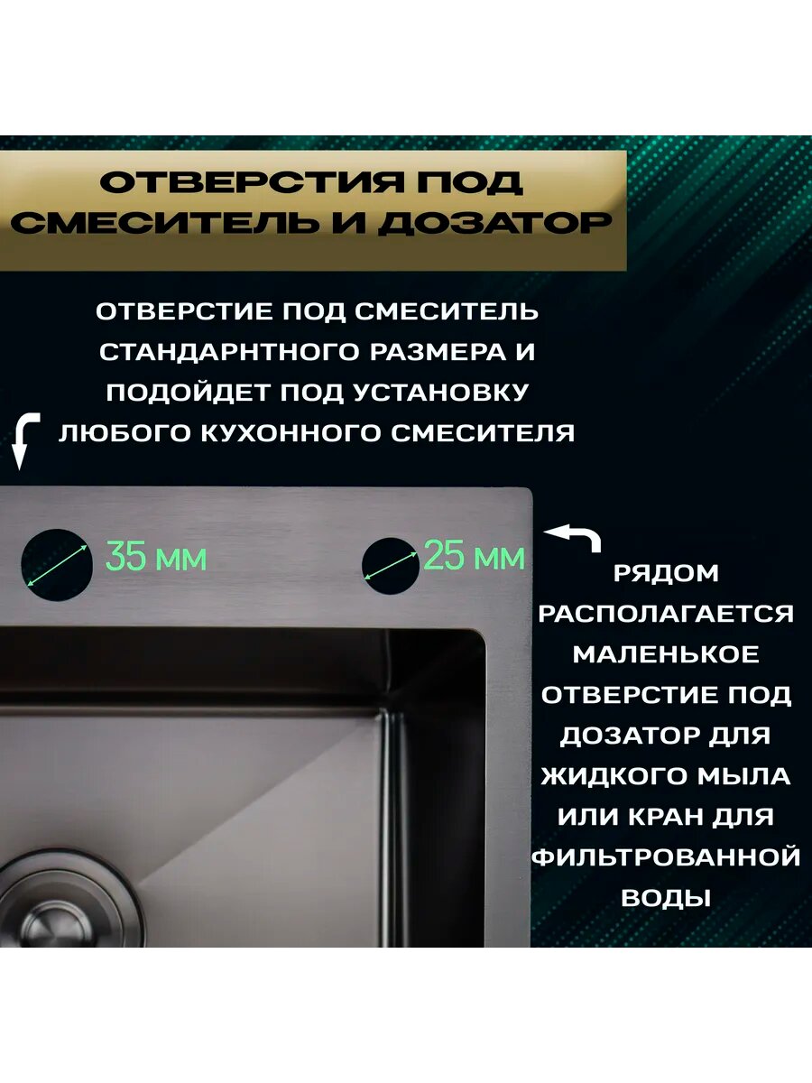 Мойка VERMON из нержавеющей стали М304 Черный 50х45 (в комплекте с коллайдером, врезным дозатором, и сифоном) толщина стали 3 мм