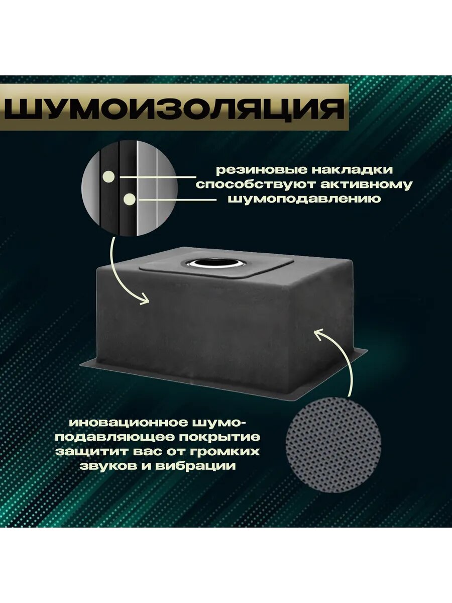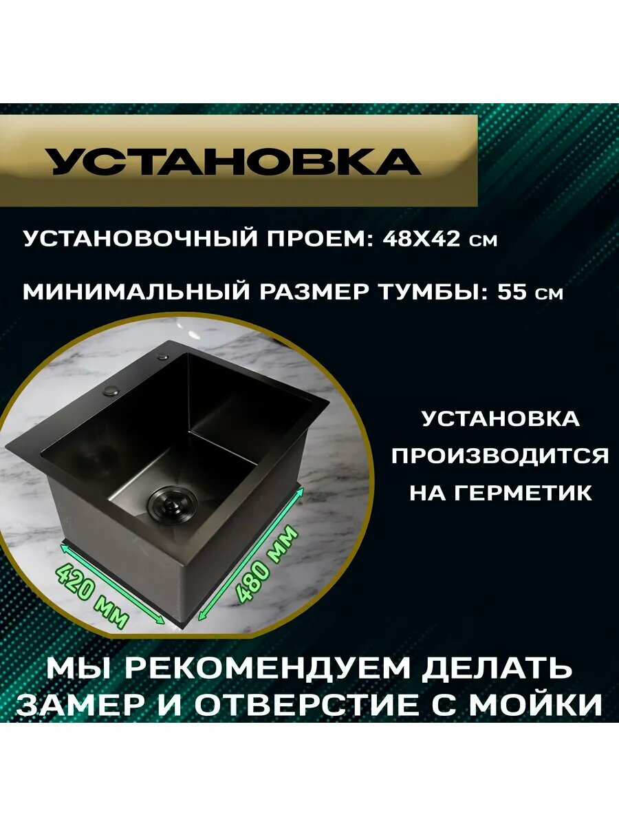 Мойка VERMON Черный 50х45 в подарок каландр, врезной дозатор, и сифон толщина стали 3 мм