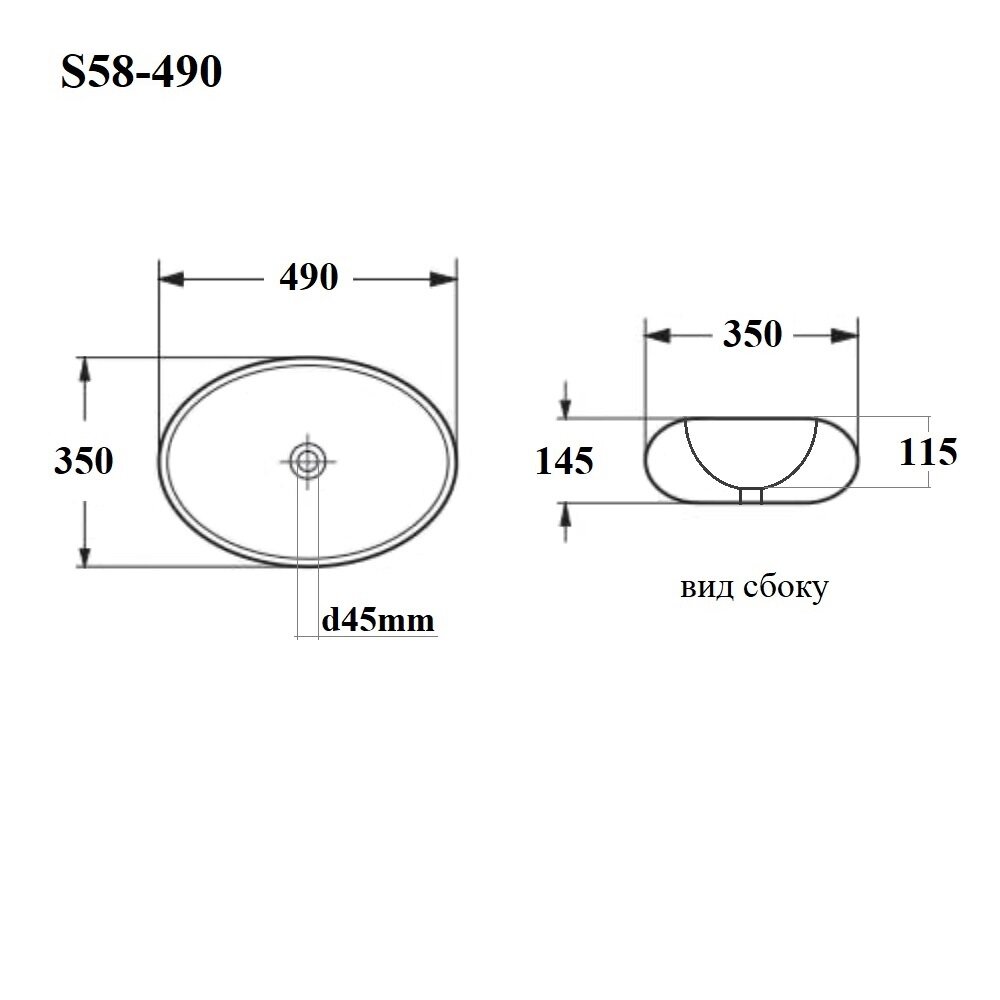 Раковина накладная 49*35*14см BOND Oval S58-490 овальная белая интересное: