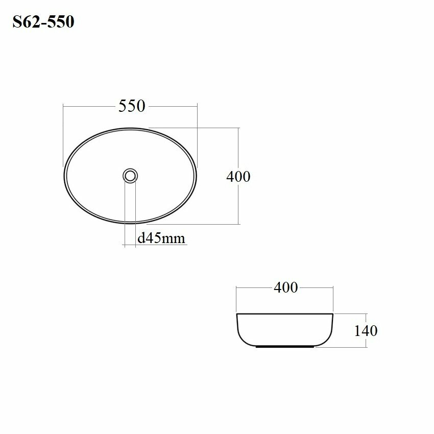 Раковина накладная овальная 55*40*14см белая BOND S62-550