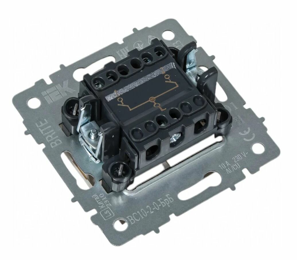Выключатель 2-кл. 10А в сборе бел. ВСР10-2-0-БрБ скрыт. уст. BRITE IEK (комплект 6 шт)
