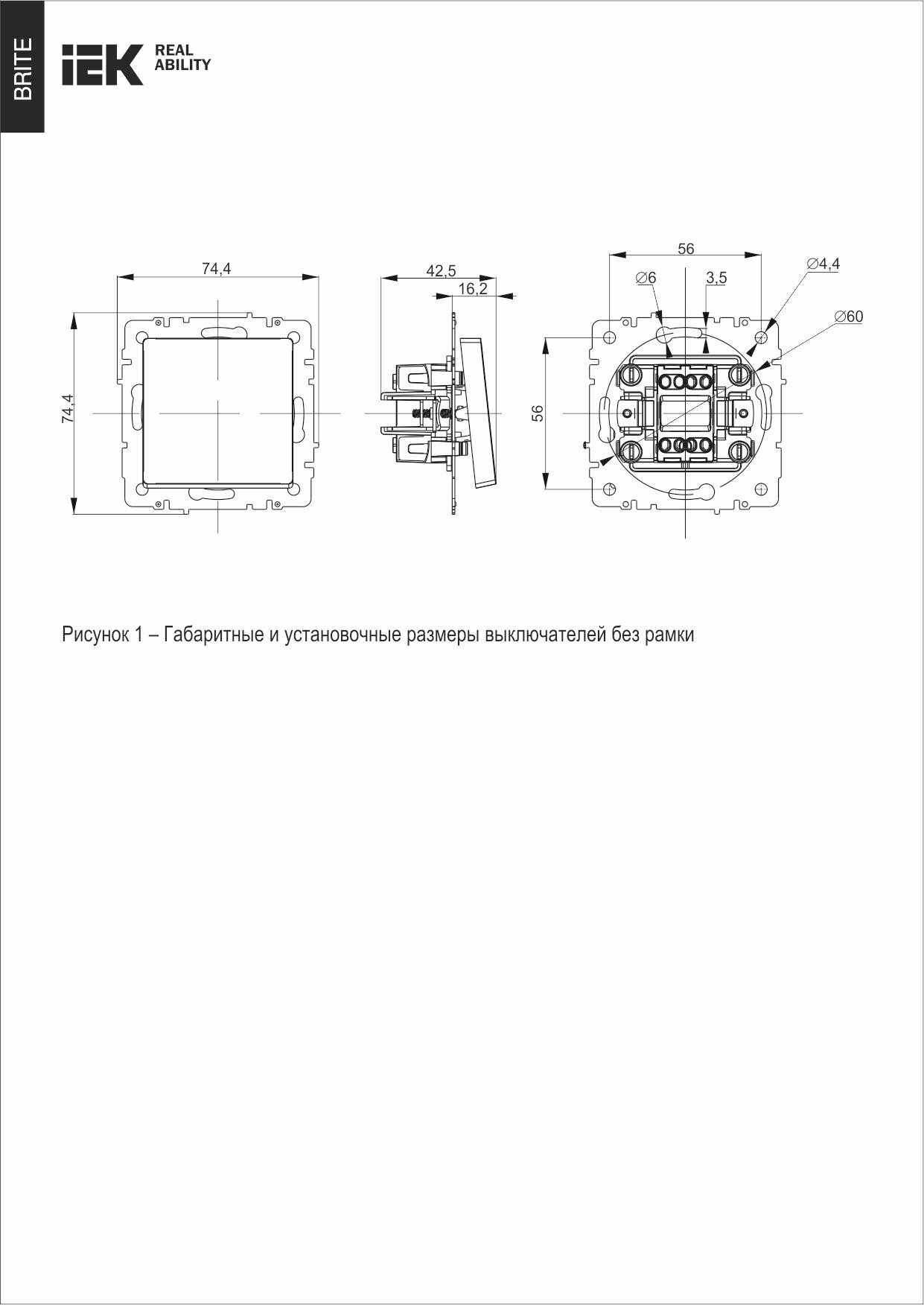 Выключатель IEK / ИЭК Brite ВСР10-1-0-БрБ, 10А 230В IP20 в сборе белый 84х84х43мм одноклавишный / переключатель