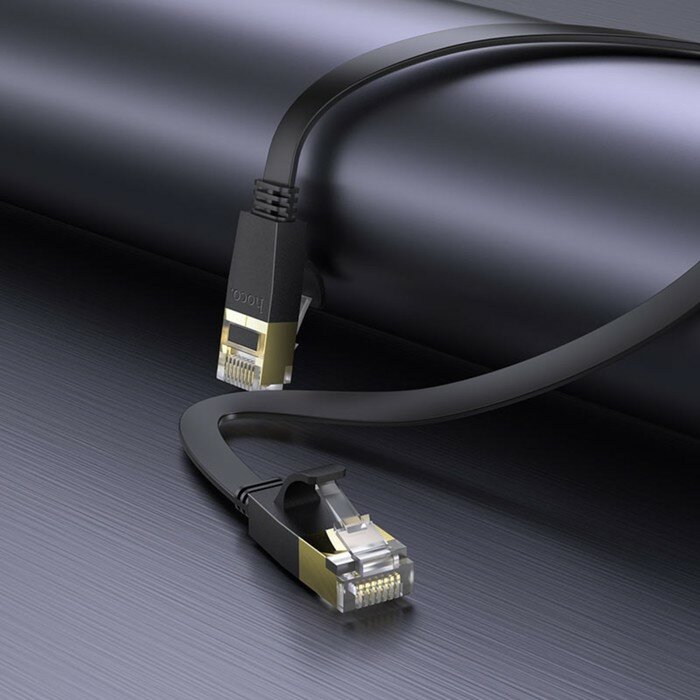 Гигабитный сетевой кабель для интернета Hoco US07, RJ45 Ethernet 1Gbps, Плоский, 10 метров, Черный