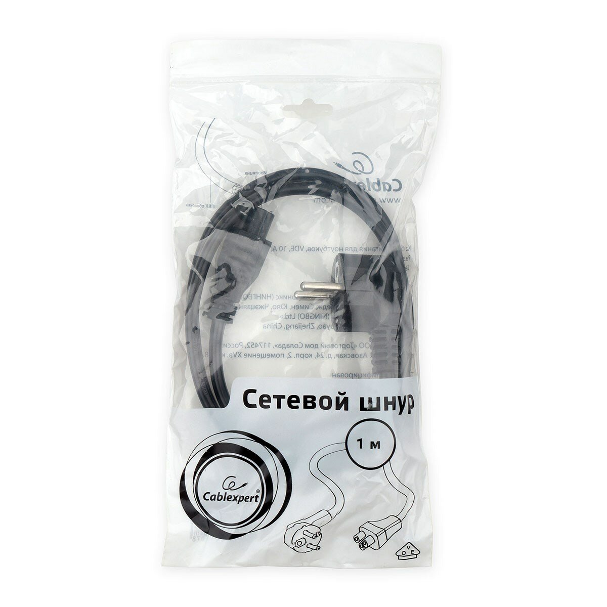 Кабель питания для ноутбуков Cablexpert PC-186-ML12-1M 1м, Schuko- C5, 10А, пакет