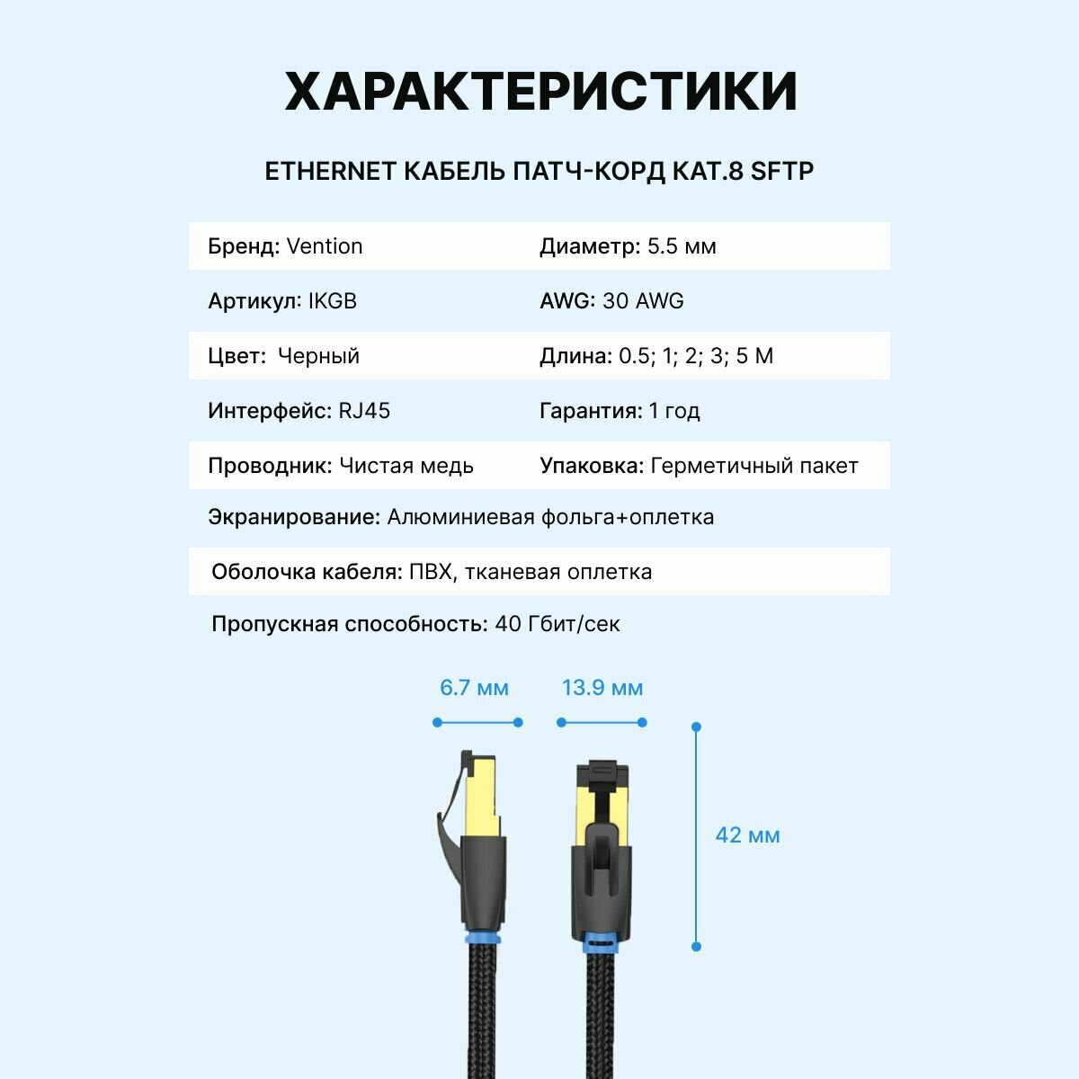 СохранитьПатч корд 0.5 м / интернет кабель прямой SFTP cat.8 RJ45 Vention сетевой кабель Ethernet с тканевой оплеткой арт. IKGBD интересное:
