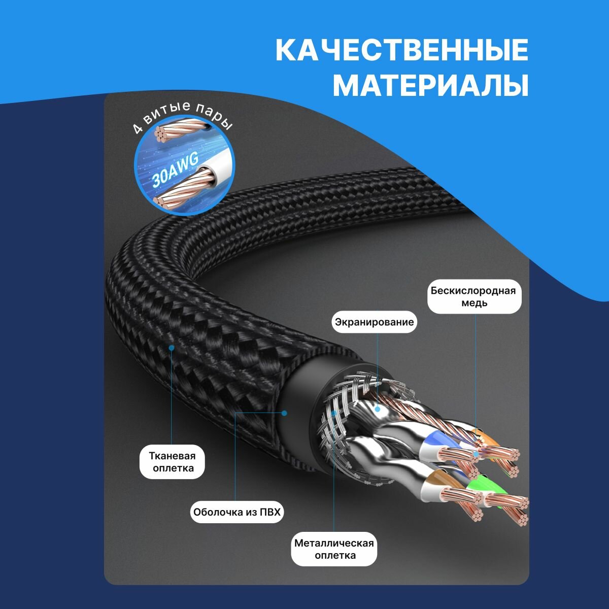Vention Патч корд прямой SSTP cat.8 RJ45 (папа) с тканевой оплеткой, интернет кабель, длина 2 м, арт. IKGBH