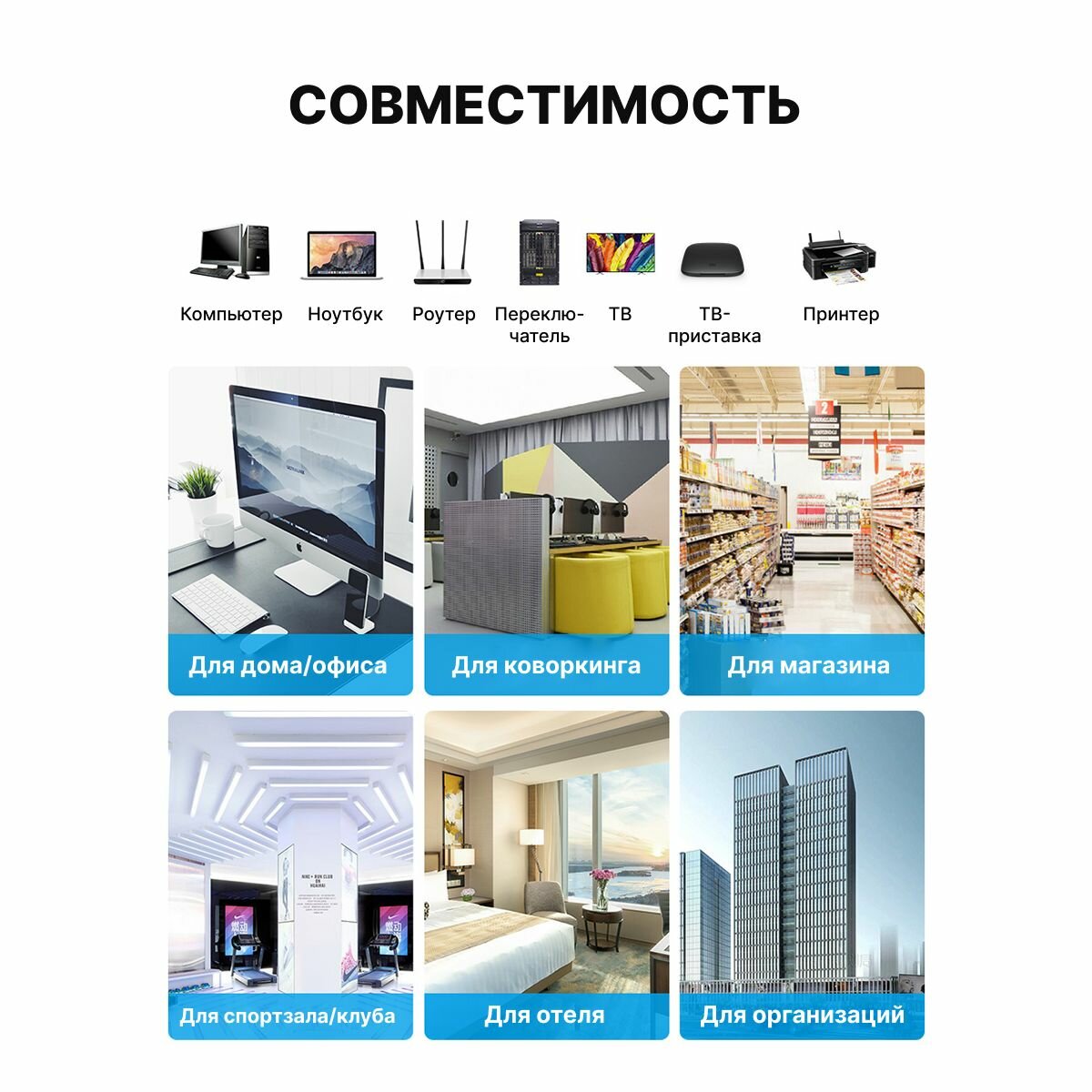 | Дополнительная информация | Совместимость: Ethernet RJ45(8p8c) - Cat. 5/5e/6/7/8 |