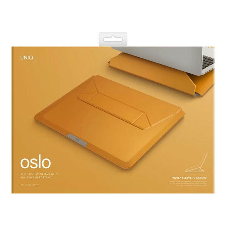Uniq для ноутбуков 14" чехол Oslo V.2 PU leather Magnetic Laptop sleeve/foldable stand Mustard