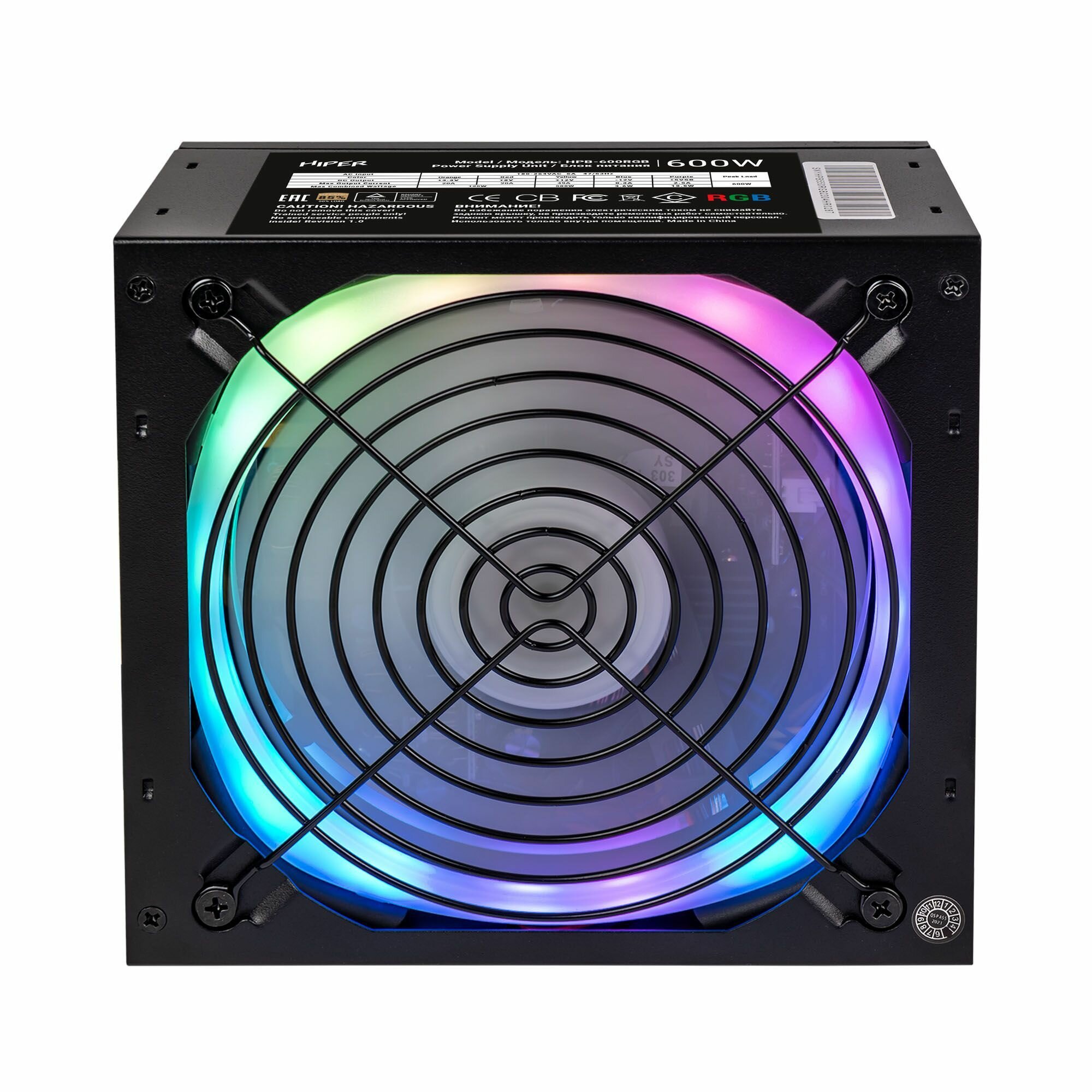 Блок питания HIPER HPB-600RGB (ATX 2.31, 600W, ActivePFC, RGB 140mm fan, Black) BOX интересное: