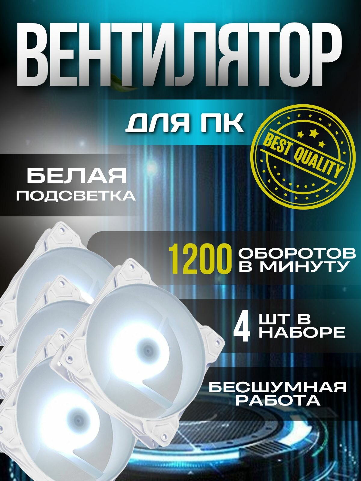 Купить Вентиляторы для корпуса 120мм c белой подсветкой , набор 4 кулера + крепеж