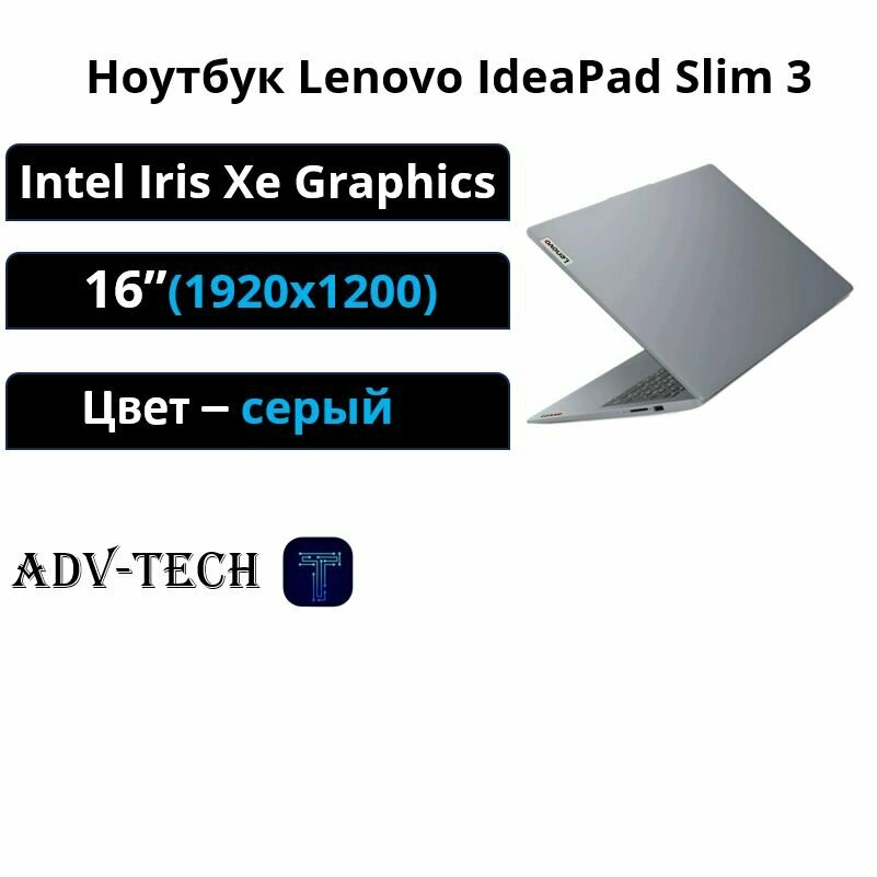 СохранитьНоутбук Lenovo IdeaPad Slim 3 16IRU8, Без ОС, серый (82X80004RK) интересное: