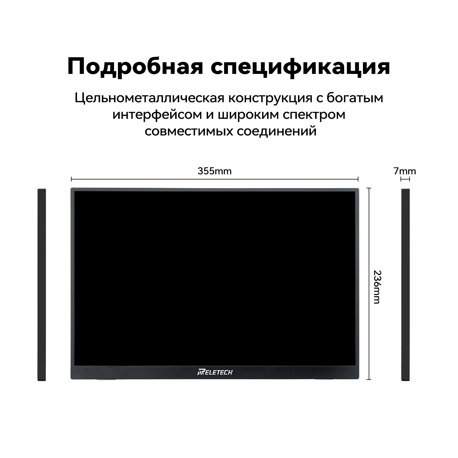 Reletech 16-дюймовый портативный монитор 1600P 2.5K 144Hz игровой дисплей для коммутатора Steam Deck PS5 Xbox