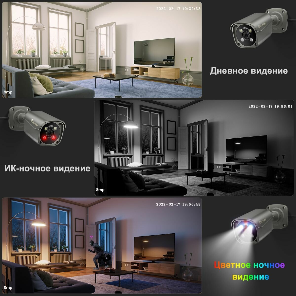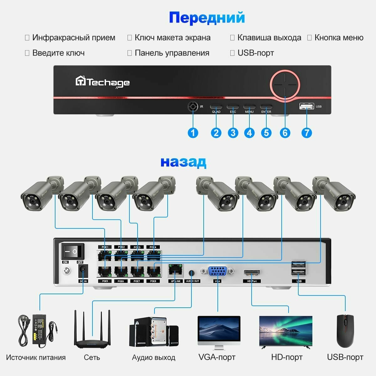 Готовые комплекты видеонаблюдения Techage, 6 камер, 4K, IP66 интересное: