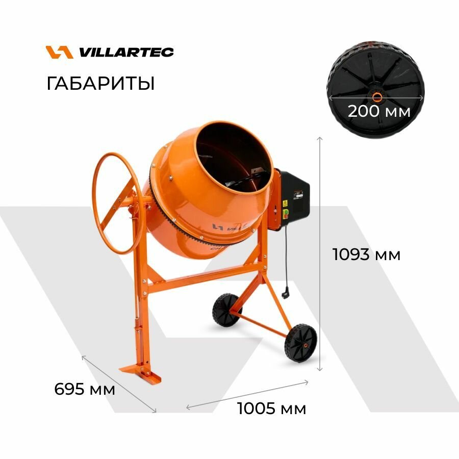 Бетономешалка строительная VILLARTEC СМ-160Р (бак 140л/70л, полиамидный венец, с педалью)
