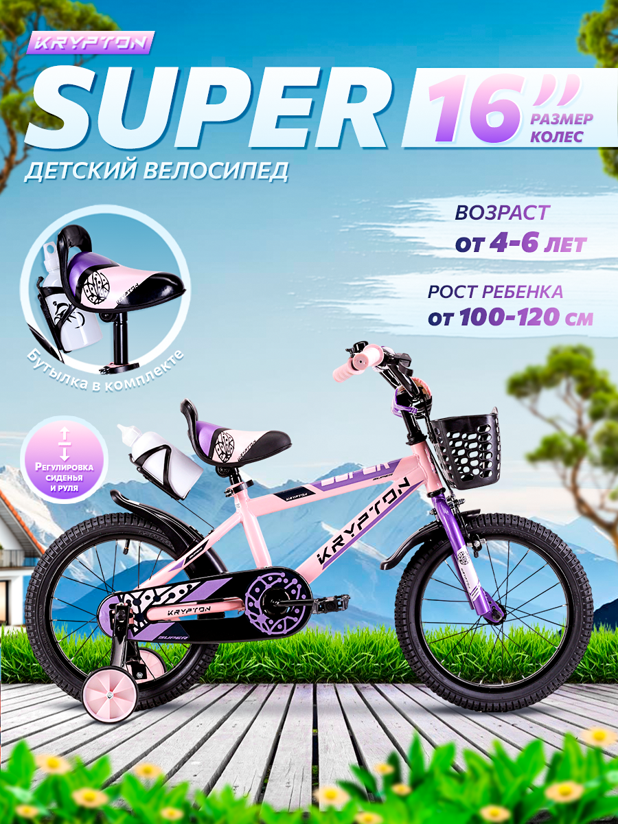 Купить Велосипед детский двухколесный 16" Krypton Super lilac pink / на 4-6 лет, рост 100-120 см