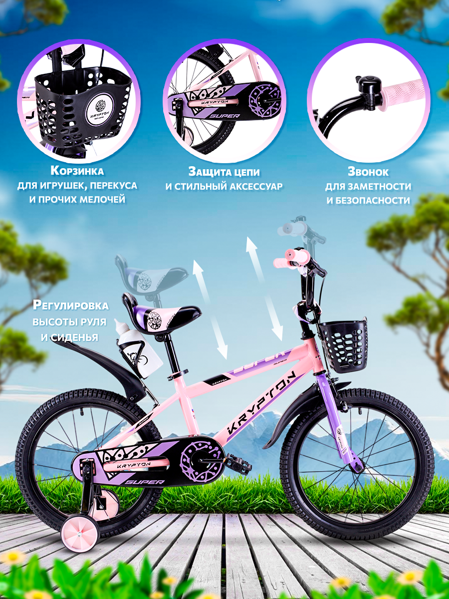 Велосипед детский двухколесный 16" Krypton Super lilac pink / на 4-6 лет, рост 100-120 см