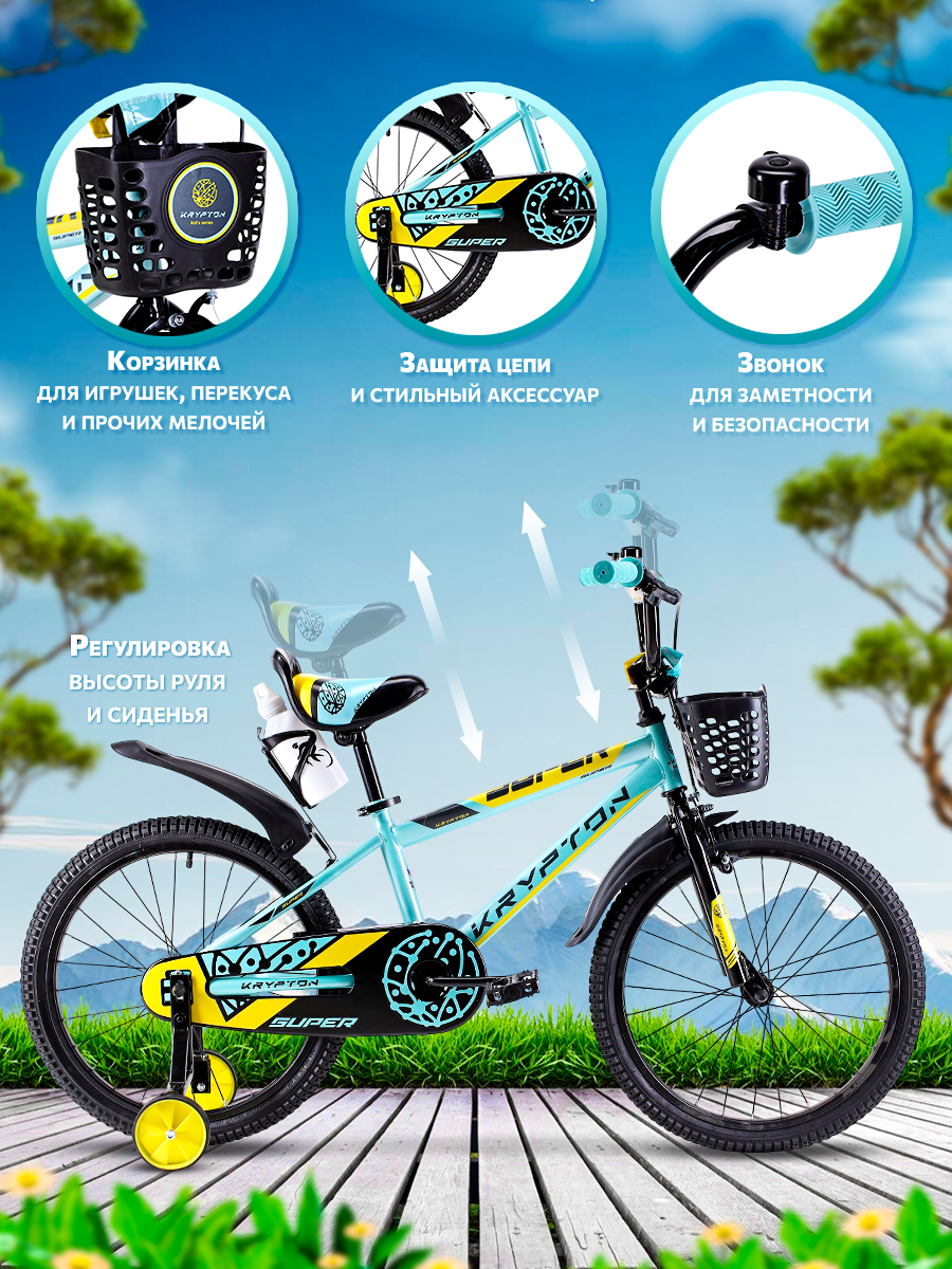 СохранитьВелосипед детский двухколесный 20" Krypton Super sky blue yellow / на 6-9 лет, рост 115-140 см интересное: