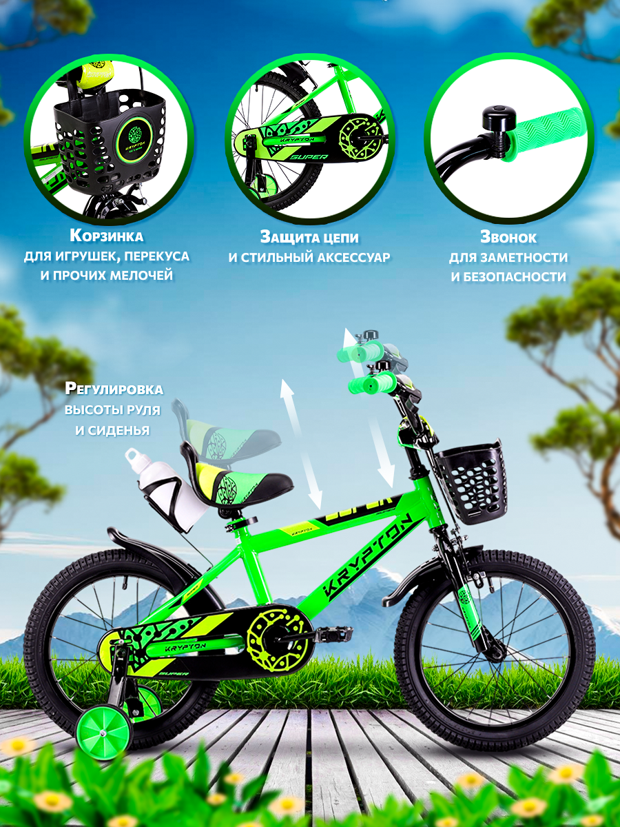 СохранитьВелосипед детский двухколесный 16" Krypton Super neon yellow green / на 4-6 лет, рост 100-120 см интересное: