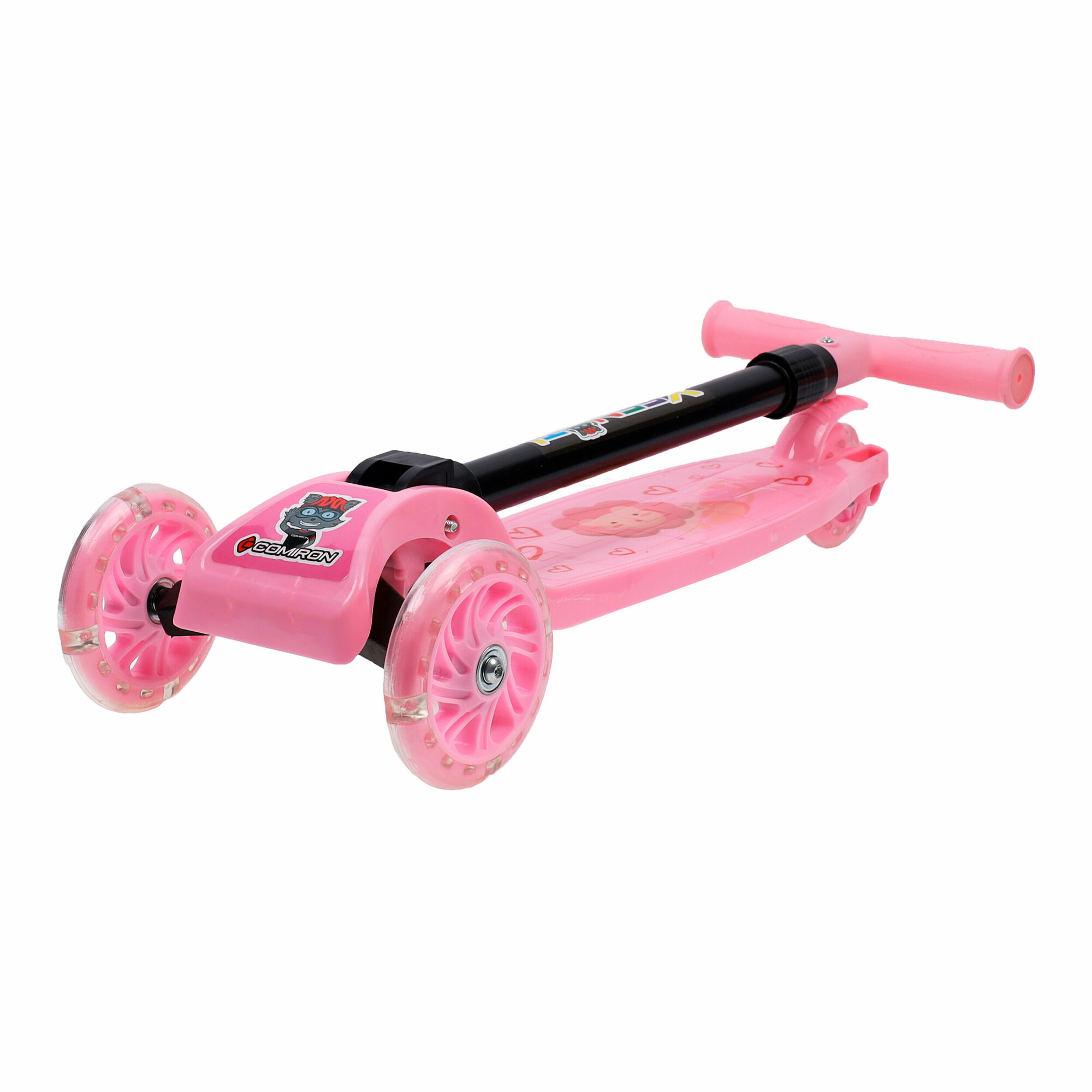 Самокат детский трехколесный COMIRON Yeenot "Зверята", регулируемая складная ручка, светящиеся колеса 110 и 75 мм, нагрузка до 40 кг, розовый / 1 шт.