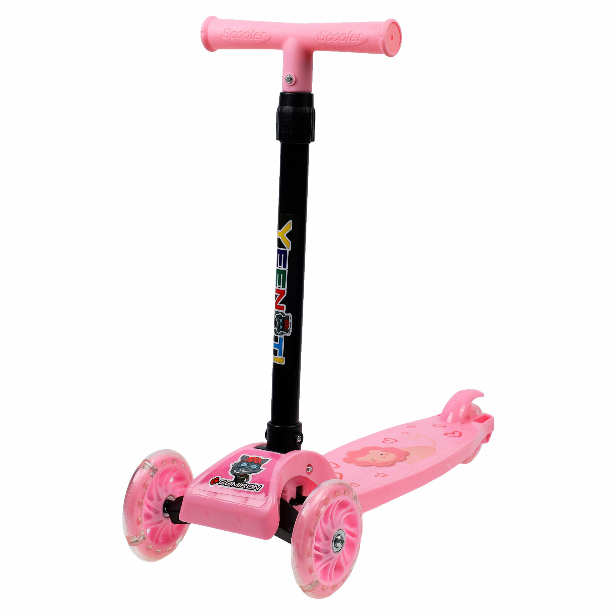 Купить Самокат детский трехколесный COMIRON Yeenot "Зверята", регулируемая складная ручка, светящиеся колеса 110 и 75 мм, нагрузка до 40 кг, розовый / 1 шт.