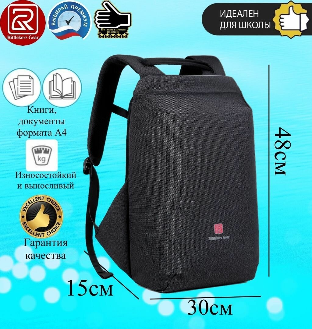 Рюкзак мужской городской USB антивор спортивный для ноутбука подростка девочек, мальчиков, детей и взрослых Rotekors Rittlekors Gear RG9227 чёрный