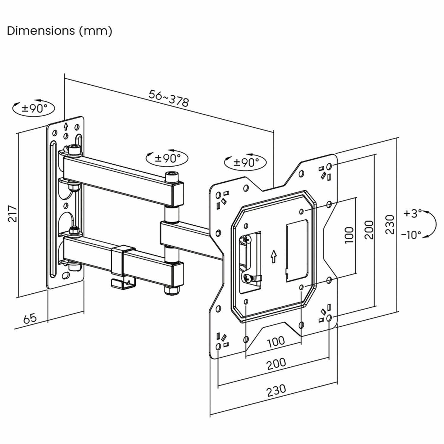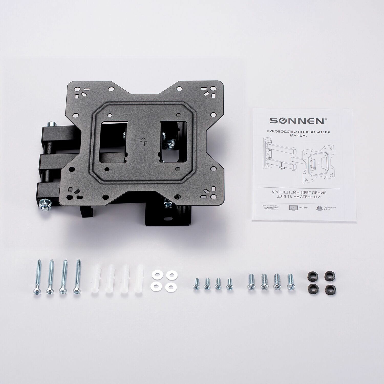 Кронштейн-крепление Sonnen для ТВ настенный, до 30 кг. Vesa 100х100-200х200, диагонали 23-43, черный