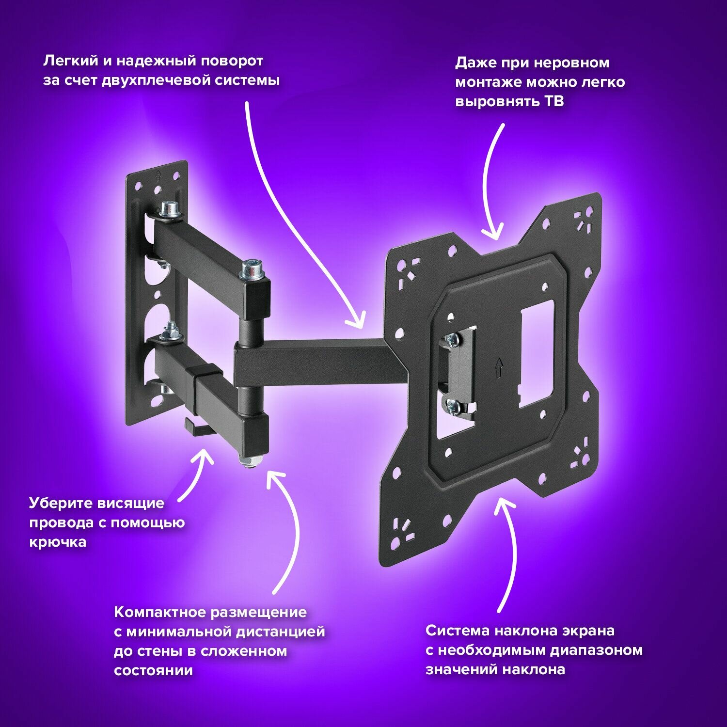 Кронштейн-крепление для ТВ настенный, до 30 кг, VESA 100х100-200х200, 23"-43", черный, SONNEN, 455947 интересное: