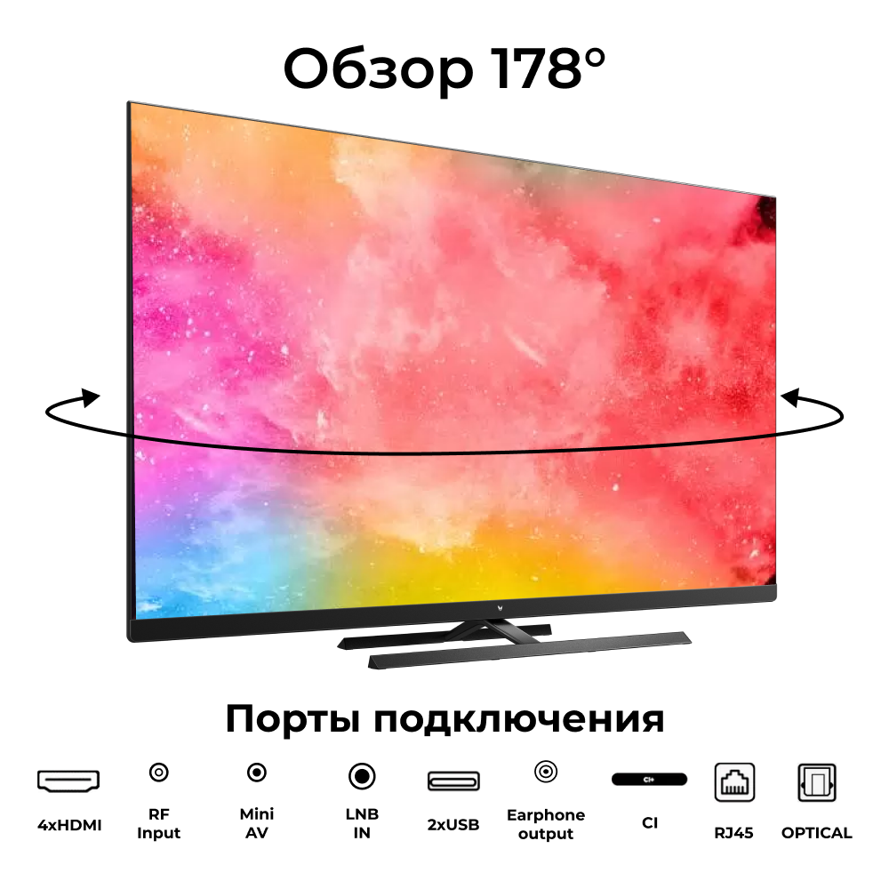 | Разъемы и интерфейсы | AV-вход / Ethernet - RJ-45 / USB Type-A x 2 / вход HDMI x 3 / выход аудио цифровой оптический / выход на наушники / слот CI/CI+ |