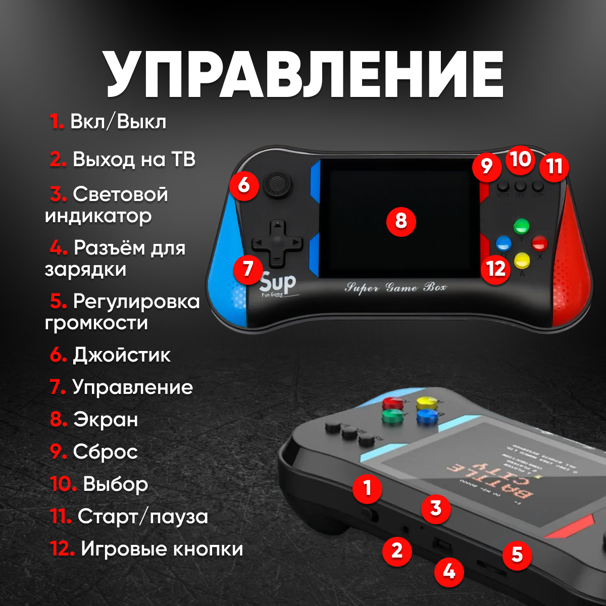 Портативная игровая консоль X7 M / Ретро приставка 500 игр / Консоль портативная - TV-приставка интересное: