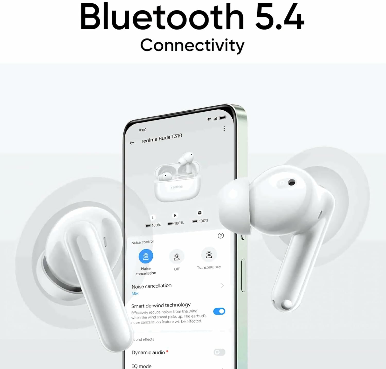 Купить Беспроводные наушники realme Buds T310 White Edition, шумоподавление ANC, Bluetooth 5.4, влагозащита, белые