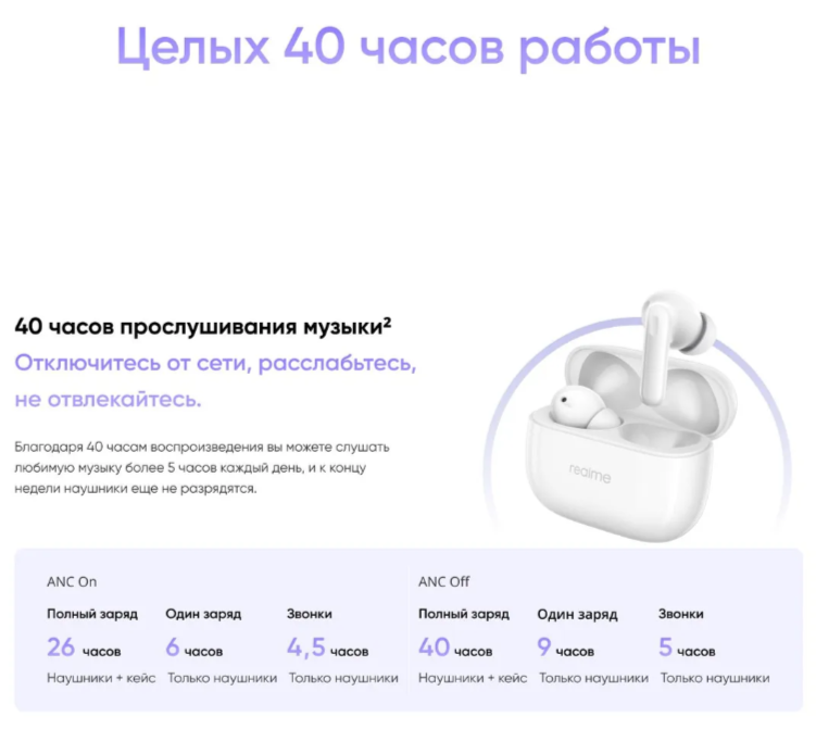 | Время работы от аккумулятора в кейсе | 40 ч |